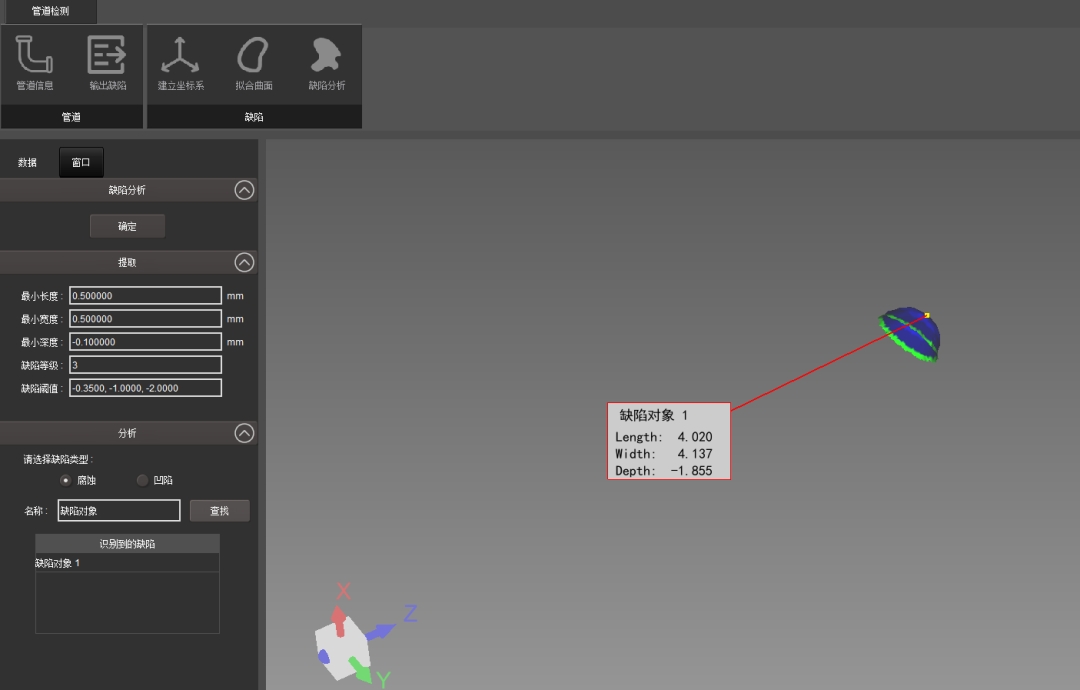實(shí)時(shí)分析,可視化呈現(xiàn) AirGO Power搭載KSCAN系列三維掃描儀,無(wú)需電腦就可以實(shí)時(shí)完成數(shù)據(jù)的采集、分析處理、存儲(chǔ)和展示。 通過(guò)掃描管道缺陷部位,對(duì)采集到的缺陷處真實(shí)點(diǎn)云數(shù)據(jù)進(jìn)行處理,精準(zhǔn)獲取管道表面缺陷處的特征數(shù)據(jù)以及管道周圍環(huán)境參數(shù)。