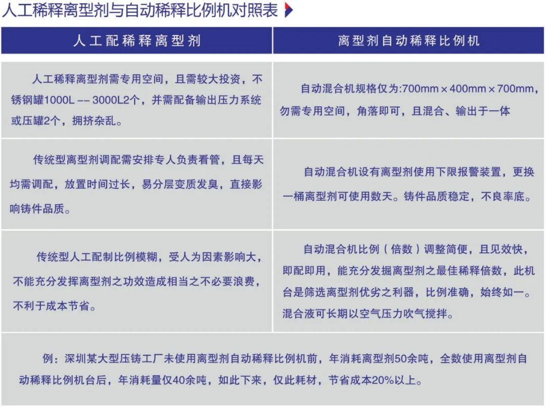 離型劑自動稀釋比例機 離型劑自動稀釋比例機是東莞永晟主打產品之一,與傳統人工操作來比,其自動混合機規格僅為700mmx400mmx700mm,勿需專用空間,角落即可,且混合、輸出于一體;自動混合機設有離型劑使用下限報警裝置,更換一桶離型劑可使用數天。壓鑄件品質穩定,不良率底。自動混合機比例(倍數)調整簡便,見效快,即配即用,能充分發掘離型劑之最佳稀釋倍數。該機臺是篩選離型劑優劣之利器,比例準確,始終如一。混合液可長期以空氣壓力吹氣攪拌。