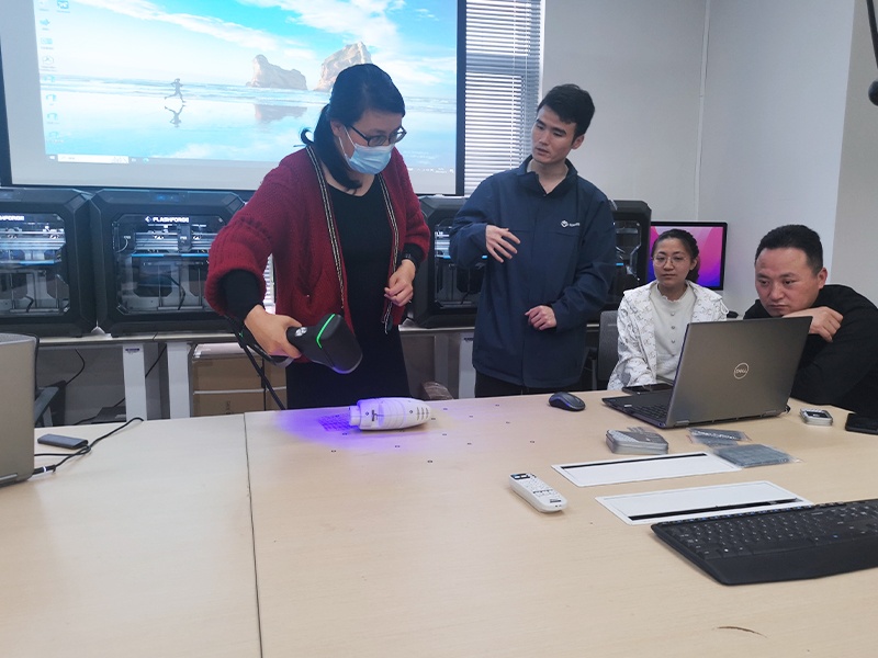 隨后,由思看科技高級技術(shù)工程師張雨給大家進行了現(xiàn)場實操演示,深入淺出地為大家示范,如何利用3D掃描設(shè)備完整采集物體的三維掃描數(shù)據(jù)并結(jié)合三維測量軟件輔助3D建模。 現(xiàn)場體驗 最后是精彩紛呈的現(xiàn)場掃描環(huán)節(jié),許多學生近距離體驗了思看科技最新的3D掃描產(chǎn)品。同學們一邊掃描物體,電腦端實時呈現(xiàn)該物體的三維數(shù)字模型,3D掃描的神奇魅力讓現(xiàn)場學生驚嘆不已。