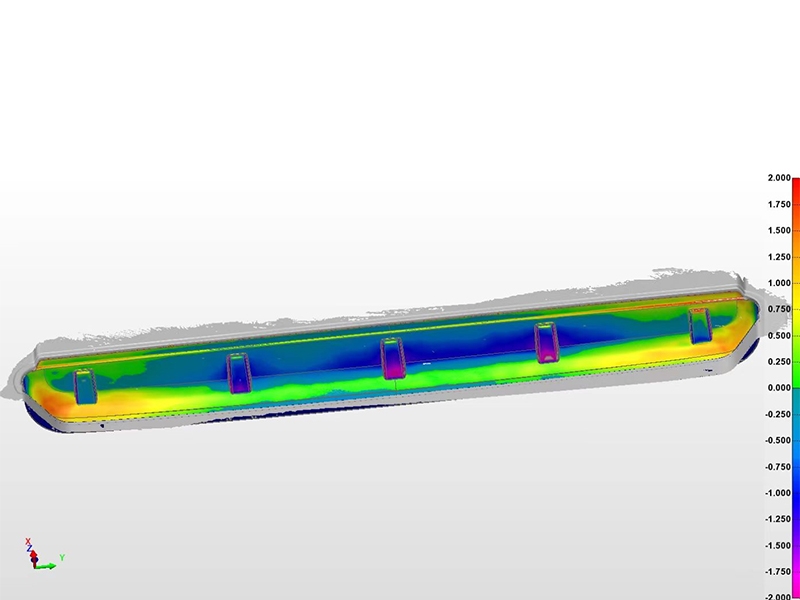 將獲取數(shù)據(jù)導入三維檢測軟件中與原始CAD數(shù)模進行對比分析,生成簡單易懂的偏差色譜圖,為后續(xù)產品的修模、改模提供精準的數(shù)據(jù)指導。 07客戶評價 思看科技的三維測量方案幫助我們完成了汽車電池箱上蓋模具的高精度三維檢測,主要優(yōu)勢體現(xiàn)在以下幾點:首先,提高了修模、改模效率,幫助我們對不合格的地方進行更加精準的修復,保證了汽車電池箱上蓋生產加工質量。其次,降低了由于修模過程中的錯誤導致的模具報廢率,減少了成本支出。最后,實時生成檢測報告使模具加工精度和形變程度一目了然,為后續(xù)指導工程師修模、補模提供了極大的便利條件。 模具工業(yè)的發(fā)展需要與機械制造、電子通信、汽車制造等大型支柱工業(yè)制造產業(yè)的發(fā)展相適應。激光三維掃描儀以其數(shù)據(jù)獲取速度快、測量精度高、無需接觸等特質,為模具制造企業(yè)提供高效精準的三維數(shù)字化質量控制方案,可以全面覆蓋工業(yè)制造全生命周期。隨著高精度三維數(shù)字化技術在模具行業(yè)的普及,將助力工業(yè)制造產業(yè)實現(xiàn)更加精細化、標準化、智能化發(fā)展。 關于思看科技 SCANTECH是全球最早研發(fā)生產手持式三維視覺測量產品的高科技型企業(yè)之一,產品輻射60多個國家和地區(qū),服務企業(yè)5000家以上,經(jīng)銷商及國際化的銷售與技術支持團隊遍布全球,為COMAC、寶馬、大眾、通用、蘋果、西門子、JCB、三一重工等知名企業(yè)及研究機構提供行業(yè)前沿的三維測量技術解決方案。 |