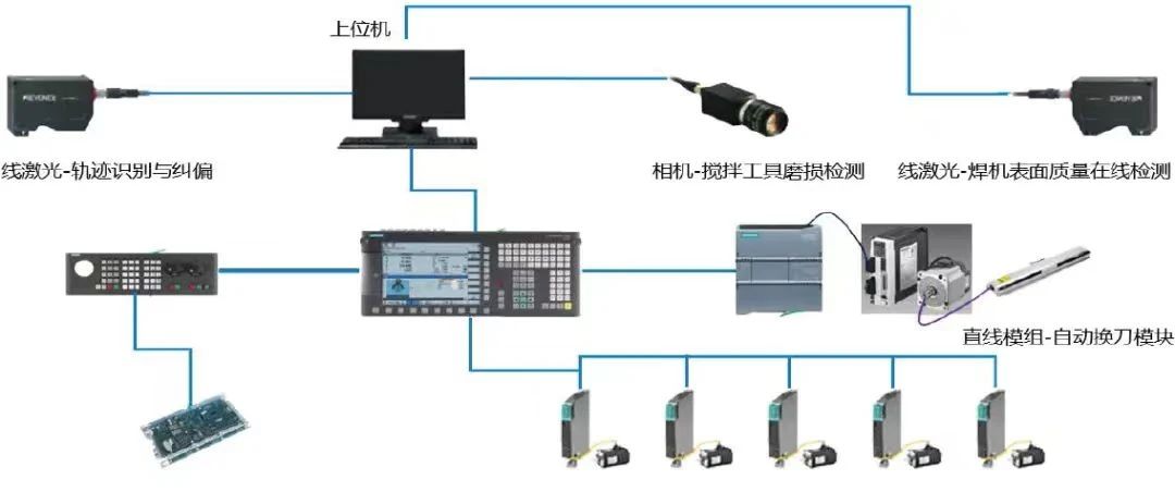 據(jù)悉,本次展示的C型攪拌摩擦焊裝備系A(chǔ)EE的拳頭產(chǎn)品。該裝備采用C型結(jié)構(gòu)設(shè)計(jì),占地面積小,整體剛性佳,精度保持性久,耐磨性佳,安全可靠;搭載西門子828D數(shù)控系統(tǒng),可擴(kuò)展恒壓力控制,具有刀具壽命監(jiān)控、示教、焊接追溯等功能;能很好地滿足2-8mm 鋁合金平面二維焊接需求,實(shí)現(xiàn)水冷板、電控盒等系列產(chǎn)品的全面覆蓋。值得一提的是,C型攪拌摩擦焊設(shè)備還具有強(qiáng)大的刀具磨損檢測(cè)、自動(dòng)換刀(檢測(cè)/換刀時(shí)間均低于5S),以及表面質(zhì)量在線檢測(cè)功能.