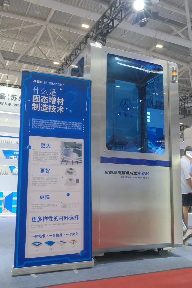 在本屆展會(huì)上,AEE首次展示了在增材制造領(lǐng)域的創(chuàng)新技術(shù)成果——固相摩擦復(fù)合成型試驗(yàn)站。徐萌先生介紹說(shuō),該裝備由AEE與澳門發(fā)展及質(zhì)量研究所(IDQ)聯(lián)合研制,是增材制造領(lǐng)域的最新技術(shù)。這臺(tái)兼具攪拌摩擦和增材制造技術(shù)復(fù)合型裝備,是國(guó)內(nèi)首臺(tái)在國(guó)家工信部備案的攪拌摩擦增材裝備。該新技術(shù)目前主要應(yīng)用在航天航空以及各高??蒲性核募夹g(shù)研發(fā)等方面。