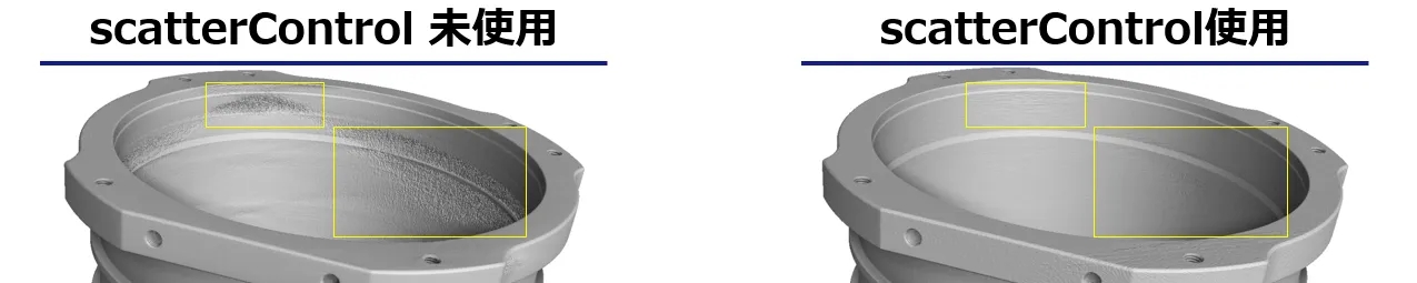 ![]() CT偽影始終是制約分析、數據處理、可靠性以及準確度的重大難題。毋庸置疑,偽影的種類繁多,像是射線硬化、多材料、散射或者環狀等均在其列。今日,要與諸位分享的乃是鋁壓鑄行業里最為常見的散射偽影。即便是單一材料的鋁壓鑄產品,通常也難逃散射偽影的影響。特別是在新能源汽車的零部件產品中,當壓鑄件的結構與尺寸愈發增大之際,散射偽影給工藝改進、分析以及量產檢測造成諸多困擾;而且工作人員有時還會誤將這一偽影視作是射線硬化所導致。 散射和射線硬化偽影的區別: 射線硬化是由于射線無法穿透被測物所導致的一種偽影,原本應是線性變化的灰度值發生了混亂所導致的。 X射線光子具有不同的能量范圍,例如自30至230keV 。如光子沿穿透方向能量衰減不同,則比爾-朗伯定律基于測量X射線強度將不足以確定穿透長度。