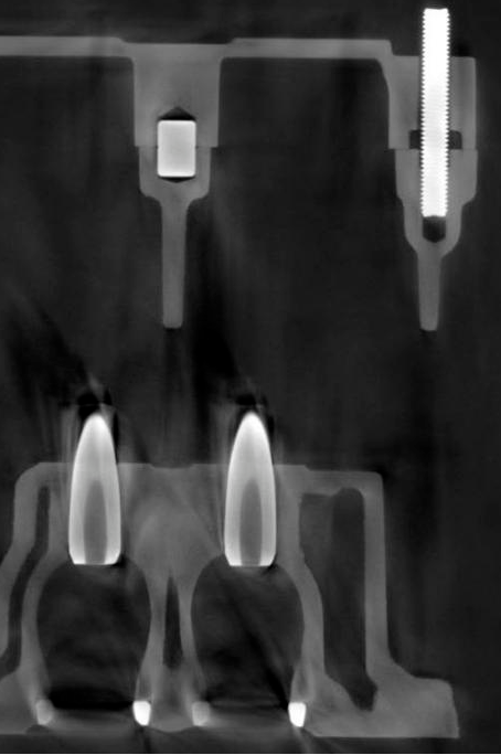 CT掃描過程中,散射偽影帶來了什么? 大家都希望了解在 X 射線的運用里,散射現象給我們的掃描質量造成的影響究竟如何。我們以 100mm 鋁塊作為被測對象,并采用大于 225kV 的 X 射線源進行實驗。在射線源產生的光子當中,約 8%的光子能夠毫無相互作用地完美穿透材料(無相互作用 NI)。其中 46%被吸收(光電效應 PE),其余的則被散射(C -康普頓效應 39%)。這意味著散射效應(康普頓散射)于模擬實驗中對掃描成像有著頗為顯著的影響。當然,這也很好地解釋了為何在我們掃描大型鋁壓鑄件時,所得到的圖像質量可能會較差(相較于小型產品而言)。 于是,在第二個實驗里,我們將塑料(其密度低于鋁)當作被測對象。此次,我們借助兩個不同電壓的 X 射線來驗證這一現象,分別運用 225kV 和 320kV 的設備對厚度大于 230mm 的塑料測試件展開測試(選用密度較低的被測物,也是為了盡可能排除射線硬化的干擾)。 下面的圖片呈現了一個體積較大的塑料部件的比較情況。左圖為 320kV 和 3mm Sn 濾片的掃描圖,右圖是 200kV 和 1mm Cu 濾片的掃描圖。兩張圖片的結果近乎完全相同,不均勻的灰值并非由電壓缺乏穿透所致,而是由散射造成的,即便在高能量狀態下,散射也幾乎相等。這一結論同樣適用于鋁材料或類似密度的部件,多數時候并非電壓的問題,而是散射的光子,依據康普頓效應,它們同樣是以高能量散射的。