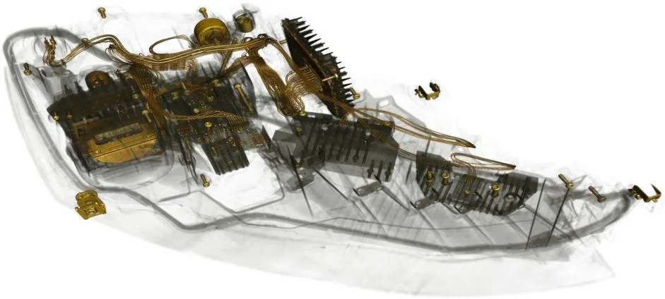這一技術不光可以應用新能源汽車一體化零件的趨勢,也可以應用在其他領域比如車燈(如圖):