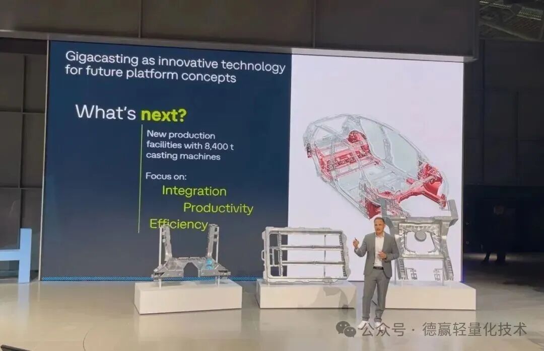 ![]() 日前(2025年9月9日至14日),在慕尼黑舉辦的IAA Mobility 2025車展上,大眾汽車在技術日發布會上宣布將為多款即將上市的入門級電動車采用一體化壓鑄技術。 初期戰略包括整合大型鋁鑄電池托盤,或更精確地說,托盤框架。該技術將率先應用于全新大眾ID. Polo、Cupra Raval、Škoda Epiq以及尚未公布量產版的VW ID. Cross。 馬克·亞當博士在會議中探討了大型鑄件的未來發展,強調其能縮短生產周期、降低復雜度并實現成本節約,同時透露可能規劃新建配備8400噸壓鑄機的工廠,重點提升集成化、生產力和效率。 演講還展望了大眾“一體化壓鑄”戰略的擴展前景,將其定位為高產量電動平臺的里程碑。 大眾尚未就前后底盤一體化壓鑄方案作出最終決定,但明確表示若未來選擇“特斯拉路線”,則需采用演講中提及的8400噸級等一體化壓鑄機。