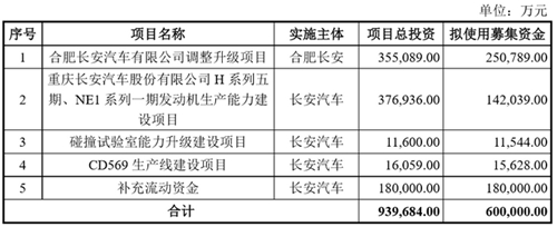 ![]() 4月27日,重慶長安汽車股份有限公司發(fā)布公告,擬定增募資不超60億元,全部用于合肥長安汽車有限公司調(diào)整升級(jí)項(xiàng)目、重慶長安汽車股份有限公司H系列五期、NE1系列一期發(fā)動(dòng)機(jī)生產(chǎn)能力建設(shè)項(xiàng)目、碰撞試驗(yàn)室能力升級(jí)建設(shè)項(xiàng)目、CD569生產(chǎn)線建設(shè)項(xiàng)目以及補(bǔ)充流動(dòng)資金。 募資資金具體使用計(jì)劃方面安排,合肥長安汽車調(diào)整升級(jí)項(xiàng)目擬使用約25.08億元,該項(xiàng)目投資總額為35.51億元,旨在進(jìn)一步提升公司新車型生產(chǎn)的效率和能力,保持和增強(qiáng)長安汽車在SUV市場(chǎng)和華東區(qū)域的競(jìng)爭力。 重慶長安H系列五期、NE1系列一期發(fā)動(dòng)機(jī)生產(chǎn)能力建設(shè)項(xiàng)目擬使用14.20億元,該項(xiàng)目投資總額為37.69億元,旨在形成新一代乘用車發(fā)動(dòng)機(jī)的大規(guī)模生產(chǎn)能力,以滿足大幅上升的市場(chǎng)需求。