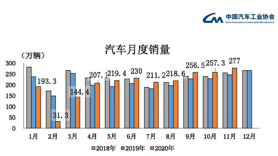 ![]() 壓鑄周刊(2020年12月14日 北京)12月11日,中國汽車工業協會在北京發布11月汽車工業經濟運行數據。11月,汽車產銷分別完成284.7萬輛和277.0萬輛,環比分別增長11.5%和7.6%,同比分別增長9.6%和12.6%。截至本月,汽車產銷已連續8個月呈現增長,其中銷量已連續7個月增速保持在10%以上。 11月,擴大內需戰略以及各項促進消費政策持續發力,國內統籌推進疫情防控和經濟社會發展工作成效明顯。汽車產銷同比繼續保持增長,行業形勢呈現穩中有進的態勢。新能源汽車市場表現突出,本月銷量呈現大幅度增長,實現本年度第5次刷新當月歷史記錄,累計銷量增速已由負轉正。出口市場延續了9月份以來的恢復態勢,本月出口創歷史新高。 汽車產銷同比繼續保持快速增長 11月,汽車產銷延續了增長勢頭,產銷量均創年內新高,分別達到284.7萬輛和277萬輛,環比增長11.5%和7.6%,同比增長9.6%和12.6%。1-11月,汽車產銷分別為2237.2萬輛和2247萬輛,同比下降3%和2.9%,降幅與1-10月相比,分別收窄1.6個百分點和1.8個百分點。