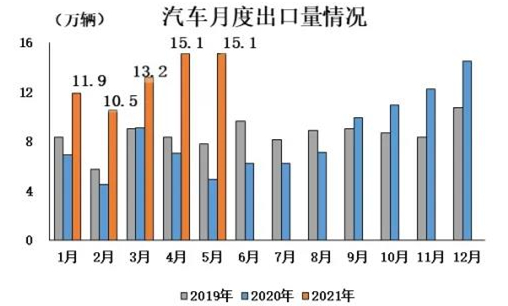 汽車出口繼續刷新當月歷史記錄。 5月,汽車企業出口15.1萬輛,環比下降0.2%,同比增長2.1倍。本月出口繼續刷新當月歷史記錄。1-5月,汽車企業出口67萬輛,同比增長1.1倍。