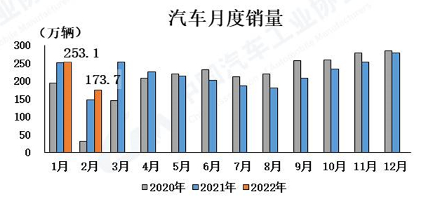 ![]() 近日(3月11日),中國汽車工業協會發布汽車工業經濟運行數據。2022年2月,我國汽車產銷分別完成181.3萬輛和173.7萬輛,環比分別下降25.2%和31.4%,同比分別增長20.6%和18.7%。其中,新能源汽車產銷分別完成36.8萬輛和33.4萬輛,同比分別增長2倍和1.8倍,表現總體依然出色,同比保持高速增長。 中汽協分析指出,由于春節假期因素的影響,2月汽車產銷環比大幅下降,同比增長,原因是新能源及汽車出口起積極的促進作用,庫存回補需求拉動增長。此外,2022年1-2月,汽車行業產銷情況總體保持穩定,同比繼續保持增長,且比2019年同期呈現10%的增長。 汽車產銷同比穩中有增 2月,汽車產銷分別完成181.3萬輛和173.7萬輛,環比分別下降25.2%和31.4%,同比分別增長20.6%和18.7%。1-2月,汽車產銷分別完成423.5萬輛和426.8萬輛,同比分別增長8.8%和7.5%。