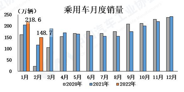 乘用車產銷同比較快增長 2月,乘用車產銷分別完成153.4萬輛和148.7萬輛,環比分別下降26.1%和32%,同比分別增長32%和27.8%。1-2月,乘用車產銷分別完成361.2萬輛和367.4萬輛,同比分別增長17.6%和14.4%。