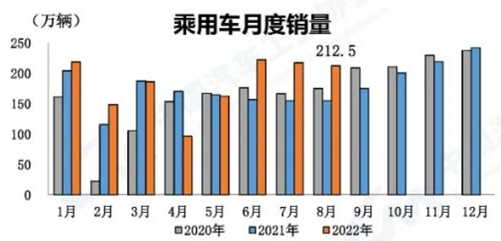 乘用車產銷受政策促進效應依舊明顯 8月,乘用車產銷分別完成215.7萬輛和212.5萬輛,環比分別下降2.4%和2.3%,同比分別增長43.7%和36.5%。1-8月,乘用車產銷分別完成1480.3萬輛和1465.5萬輛,同比分別增長14.7%和11.7%。