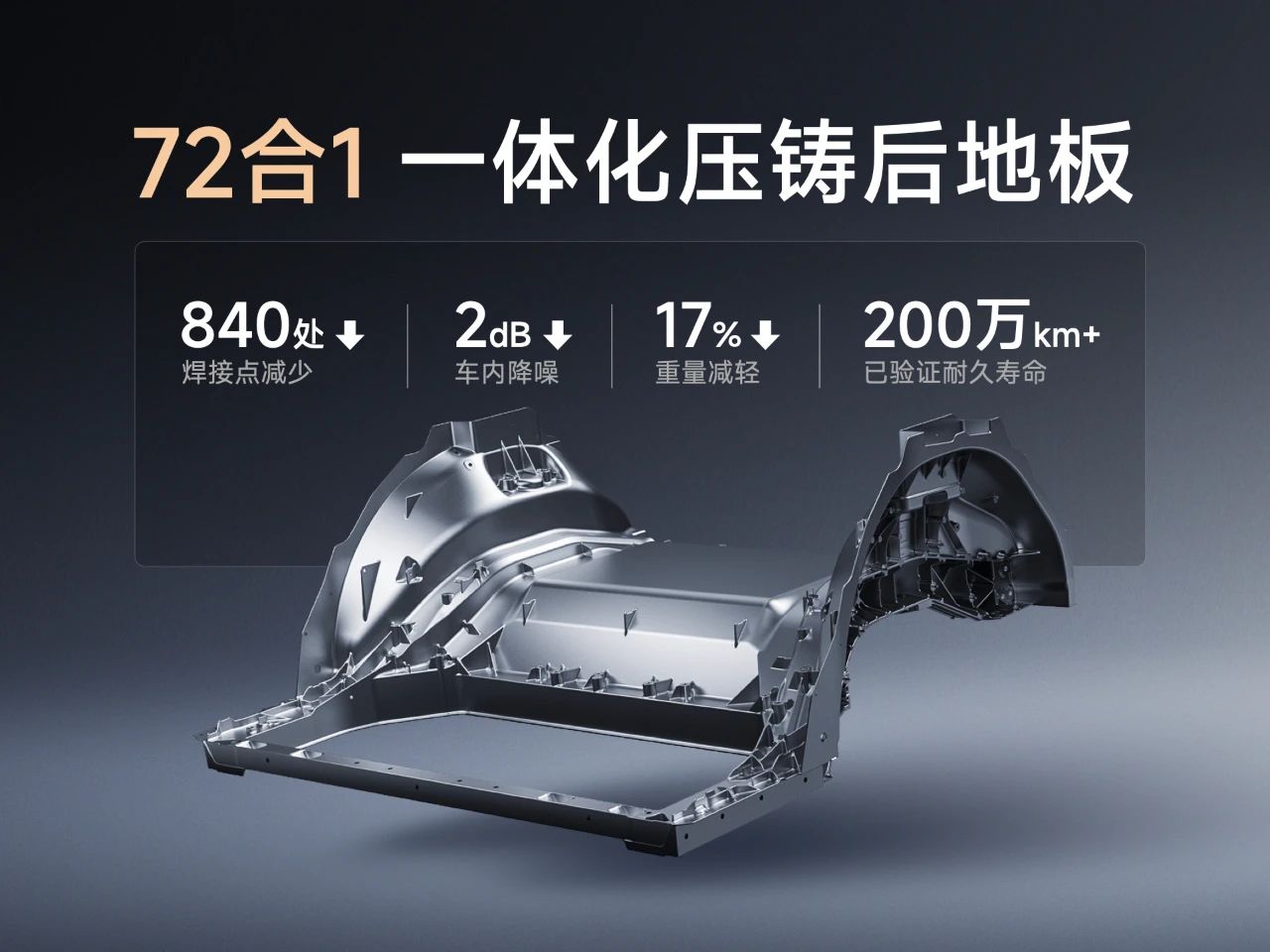 ![]() 一體化大壓鑄技術最早是特斯拉在Model Y上實現量產,這是汽車生產效率提升的又一次制造革命。通過巨型大噸位壓鑄機,將車身以往分散的零部件,一次壓鑄成型。相比傳統工藝,它有生產效率高、零件堅固可靠等多重優勢,是目前汽車行業新技術應用的明珠。小米是目前國內唯一同時擁有量產自研壓鑄合金材料,以及自研大壓鑄設備集群系統兩項技術的汽車廠商。 如今的汽車制造領域,大壓鑄已是大勢所趨。相對傳統沖壓工藝,效率極高且更安全。但設備投資大、技術難度高、且制造成本更貴。 小米SU7的后地板采用大壓鑄工藝,其尺寸比特斯拉大17%,需要更大噸位鎖模力的壓鑄機,因此我們首先定制開發了9100噸鎖模力巨型一體壓鑄機。但僅僅一臺壓鑄機是遠遠不夠的,壓鑄集群的設計和自研材料缺一不可,自主設計和自主制造是掌握一體化大壓鑄核心技術的關鍵。 小米大壓鑄件需要滿足大尺寸、長流程、輕量化三大核心指標,因此對合金綜合指標要求極為苛刻。小米與國家級材料重點實驗室一起合作,通過小米自研的多元材料性能AI仿真系統, 在1016萬種配方中,遴選出兼顧強度、韌性和穩定性的最優合金配方,制造出“小米泰坦合金”。 得益于“小米泰坦合金”壓鑄成型的一體化后地板及CTB一體化電池技術,小米SU7整車扭轉剛度高達51000N·m/deg,相當于傳統油車的兩倍。不僅如此,我們在結構方面,還創造性地設計了三段式防撞設計,在普遍的中低速碰撞中,能夠實現只更換防撞梁和潰縮區,不更換后地板,確保了維修經濟性。 01 9100噸超強鎖模力,90kg液態合金材料瞬間成型 小米超級壓鑄技術核心是一臺擁有9100噸鎖模力、重達718噸的大壓鑄機,相當于4臺波音747的重量,圍繞它的是超過60個設備,占地840平方米的超級大壓鑄集群。噴涂、控溫、合模、開合之間,9100噸強大鎖模力將模具牢牢鎖住,加熱至700度的液態鋁合金原料,通過封閉鋁液系統定量傳送,100毫秒間壓射入模 ,90kg液態合金原料,一瞬間填滿整個模具。 這不僅是壓鑄的成型,也是集群工作的開始:檢測、冷卻、切割等9大工藝,433項工業參數精準銜接,配合16道自動化裝配工藝,精密、連貫 、細致入微,讓72個零件合而為一。 質量是工業生產的生命線,小米超級大壓鑄集群擁有視覺大模型質量判定系統,即使是肉眼不可見的細微缺陷,也能在2秒內全面查清,檢測效率是人工檢測的10倍,檢測精度是人工檢測的5倍以上。 通過小米超級大壓鑄技術生產的小米汽車后地板,實現了零件72合一,焊點減少840個,減重17%,車內路噪降低2dB,同時生產工時減少45%,一體化后地板的設計壽命是傳統后地板的10倍以上,能夠輕松實現200萬公里以上的使用壽命。 堅固的一體化后地板及小米CTB一體化電池技術,使得整車扭轉剛度能夠突破51000N·m/deg,這相當于傳統油車的兩倍。同時,一體化后地板能夠在后碰中為后排乘員提供更堅固的安全區,我們在測試中通過了90km/h的全球最高標準后碰實驗。