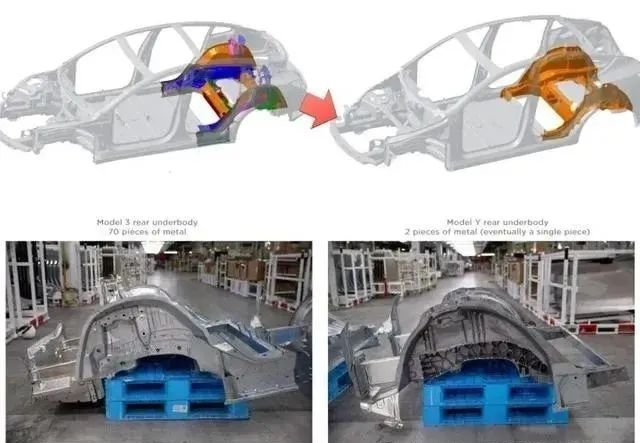 圖 零部件數量驟減 Cybertruck沿用了Model Y的一體化方案即前機艙+后車身地板。