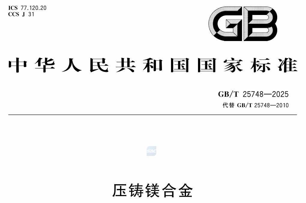 2025年12月2日,國家市場監督管理總局、國家標準化管理委員會聯合發布了 GB/T 25748-2025《壓鑄鎂合金》國家標準。
