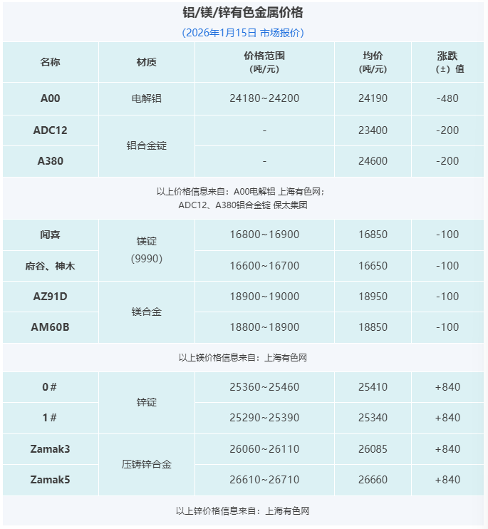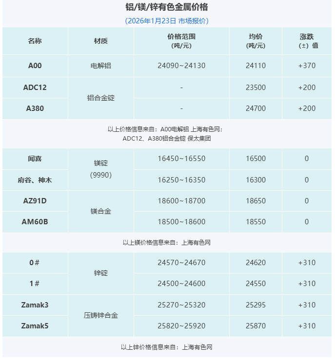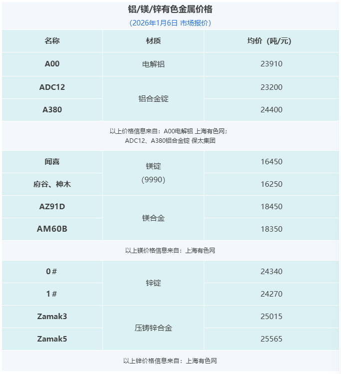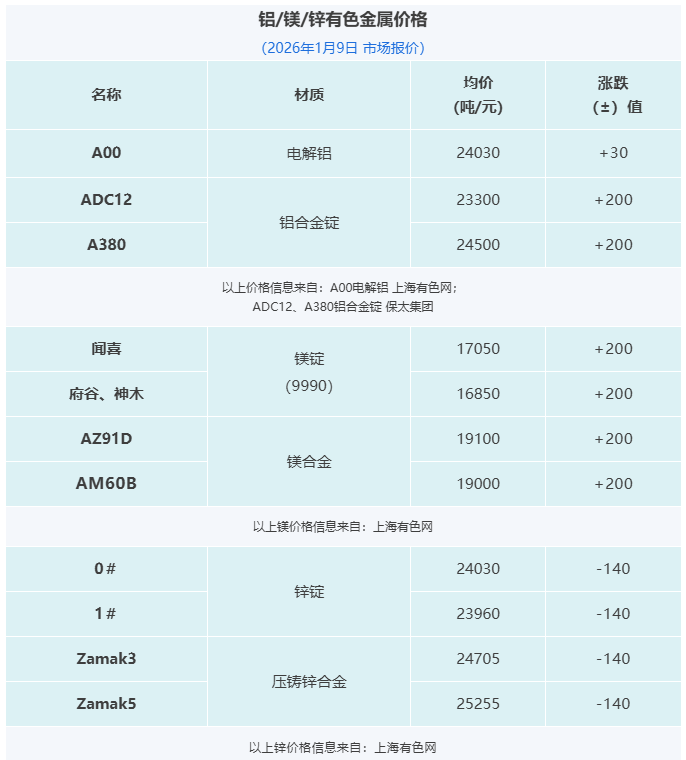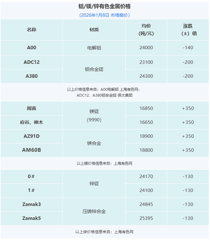 晉拓股份墨西哥壓鑄工廠啟動試生產;寶武鎂業:聯營公司安徽寶鎂新建項目處于投產爬坡階段;隆源股份2025年營收增長18.05%;怡球資源2025年預計凈利最高至1.99億元。