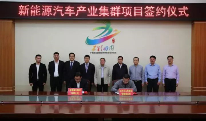 項目簽約現場 11月6日,廣西玉林玉東新區與安源客車制造有限公司舉行戰略合作框架協議簽約儀式。項目第一期擬投資10億元,年內在玉東新區建設房車組裝生產基地,2018年產能預計達到2000輛。第二期擬投資50億元建設新能源物流車和國民電動車生產基地,自2018年起根據項目發展情況逐步實施,2019年產能預計達到1萬輛。 晝田汽車零部件項目落戶瀏陽