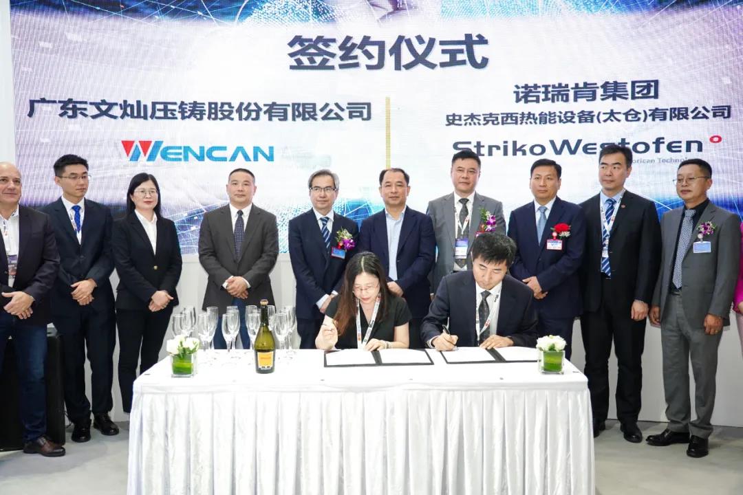 ![]() 文燦股份采購5臺史杰克西定量爐 昨日(2021年5月26日)上午,第十五屆中國壓鑄工業展覽會首日,史杰克西熱能設備(太倉)有限公司展臺,廣東文燦股份有限公司與諾瑞肯集團及旗下品牌史杰克西熱能設備(太倉)有限公司成功簽定了戰略合作協議。根據協議,文燦集團將采購5臺史杰克西Westomat定量保溫爐。據了解,新設備將配套文燦股份當日剛簽下的大型壓鑄機,用于文燦股份的華東工廠。