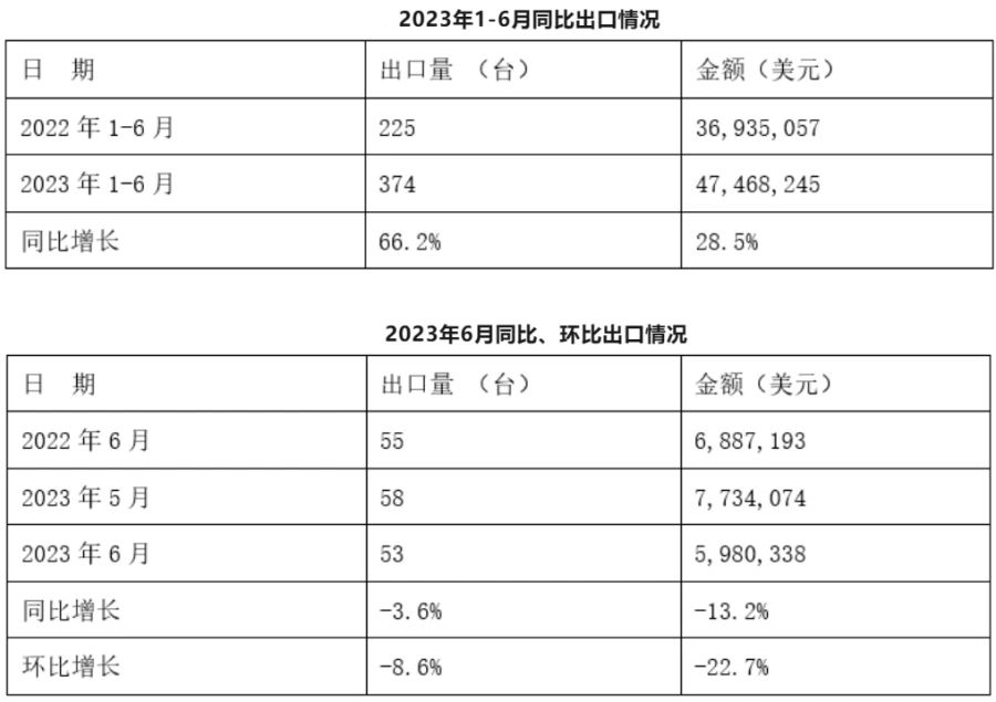 據介紹,公司已建成重慶、襄陽、東莞三大生產基地,目前正在建設第四個生產基地—馬鞍山生產基地,主要服務華東客戶。馬鞍山生產基地共350畝,建設規模約28萬平方米,其中一期建設規模約為10萬平米,目前正在建設中,預計明年上半年建成,下半年投產,投產后將提升公司現有產能。 在一體化壓鑄方面,美利信公司現有一臺7000噸、一臺8800噸超大型壓鑄機,另外還訂購了一臺8800噸壓鑄機,目前量產產品的良率都在90%以上。此外,公司在新能源汽車領域有較多的試制項目,目前在一體化車身的結構件材料的研發上已取得突破,公司會根據未來預判的主流產品持續開發相對應的材料。 上半年我國冷室壓鑄機出口374臺 來自中國鑄造協會消息,根據海關數據統計,2023年1-6月,我國冷室壓鑄機共計出口374臺,同比增長66.2%。其中6月出口53臺,同比下降3.6%,環比下降8.6%。