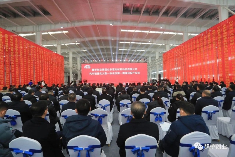 ![]() 廣東鴻圖:16000T超大型壓鑄設備項目進展順利 12月11日,廣東鴻圖在互動平臺回復投資者提問時表示,公司參與研發的16000T超大型智能化壓鑄設備項目進展順利,后續將按計劃推進設備的到場安裝及投產工作。 據悉,今年10月26日,力勁發布了16000T超大型壓鑄單元,該壓鑄單元是廣東鴻圖與力勁集團繼聯合開發12000T壓鑄單元的再次合作。目前,廣東鴻圖在廣州的黃埔工廠有兩臺7000T、12000T壓鑄機,主要為小鵬汽車配套,其中7000T的用來壓鑄小鵬X9的前艙,12000噸的用來壓鑄后地板。規劃安裝的16000T壓鑄單元,將生產電池包。 山東宏燦汽車輕量化大型一體化壓鑄項目投產 昨日(12月12日),山東宏燦材料科技有限公司汽車輕量化大型一體化壓鑄一期項目投產儀式,在山東濱州市惠民經濟技術開發區高端鋁產業園舉行。該項目由魏橋創業集團投資,是魏橋向高端裝備、智能制造企業轉型的關鍵一環,將依托集團產業基礎、先進材料等優勢,打造全國第一條“鋁水—壓鑄—裝備制造—回收利用”的全新綠色示范產業鏈。