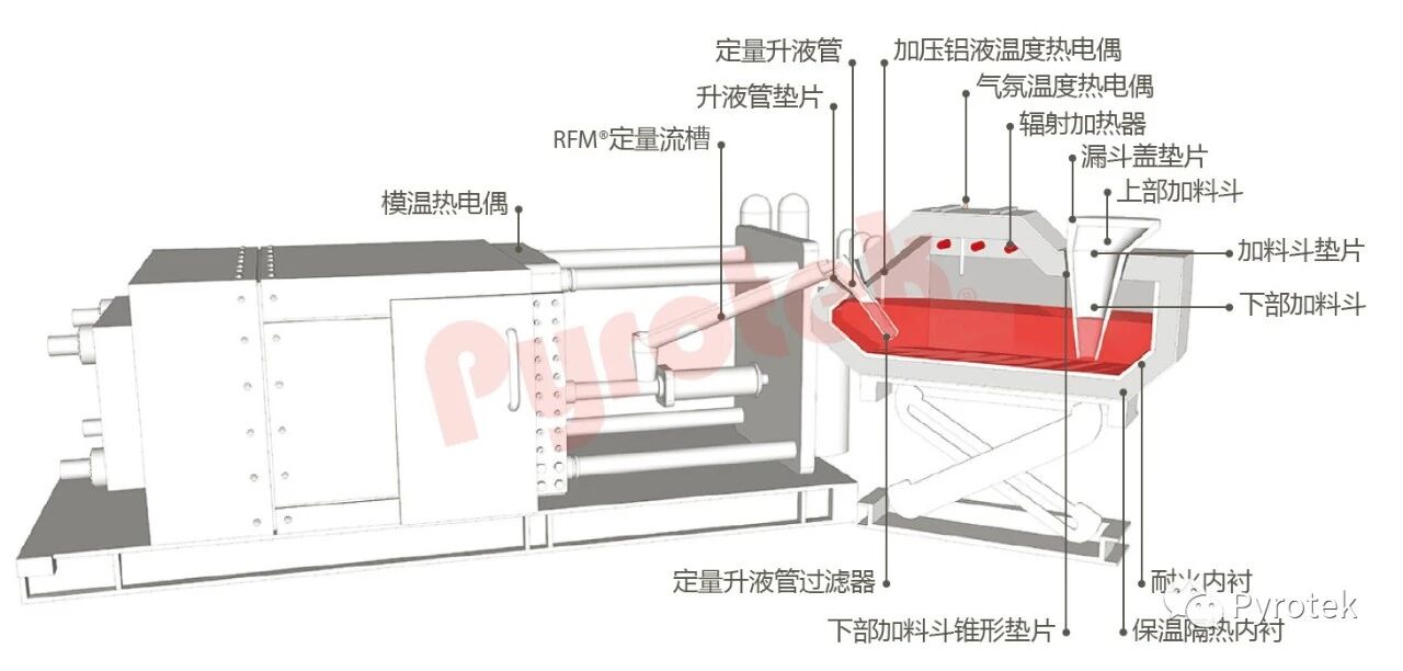 Pyrotek 為壓鑄提供RFM? 自動澆勺、轉湯包、澆鑄漏斗、除氣設備、保溫爐、過濾器以及各種環保除氣除渣劑等產品。
