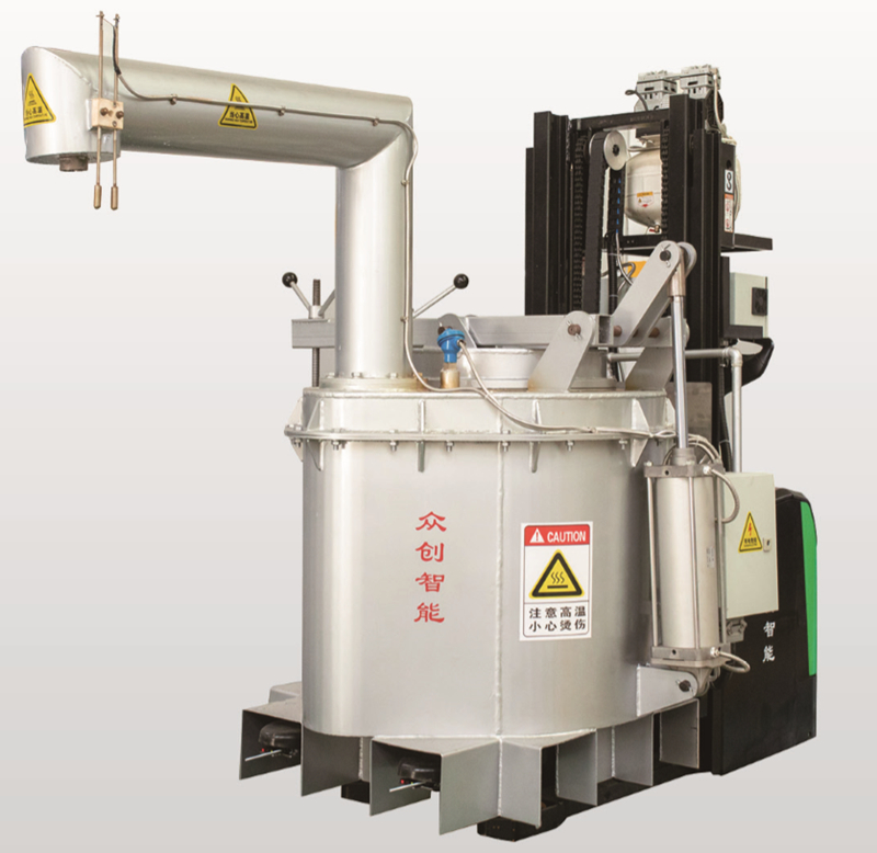 氣壓式定量包 孫繼文先生表示:“相比傳統保溫爐,鋁合金定量爐擁有許多優勢,可節約50%的用電量,氧化鋁產生減少至0.06%,金屬燒損減少80%;其定量精度可達±1.5%;故障率極低,使用壽命可長達10年,提供潔凈的鋁液保障鑄件品質。” 本屆展會,寧波眾創除了實物展示鋁合金定量爐外,還向專業觀眾推介其氣壓式定量包、氣壓自動吸式定量包、鋁液智能輸送線。據介紹,氣壓式定量包,采用全封閉運輸,定量式傾注鋁液,智能閉環控制,自由設定鋁水供給量,運輸和注鋁過程安全、節能、高效等優勢。在展會現場,寧波眾創的氣壓式定量包獲得寧波敏嶸機械有限公司青睞,現場簽訂一臺氣壓式定量包采購協議。 |