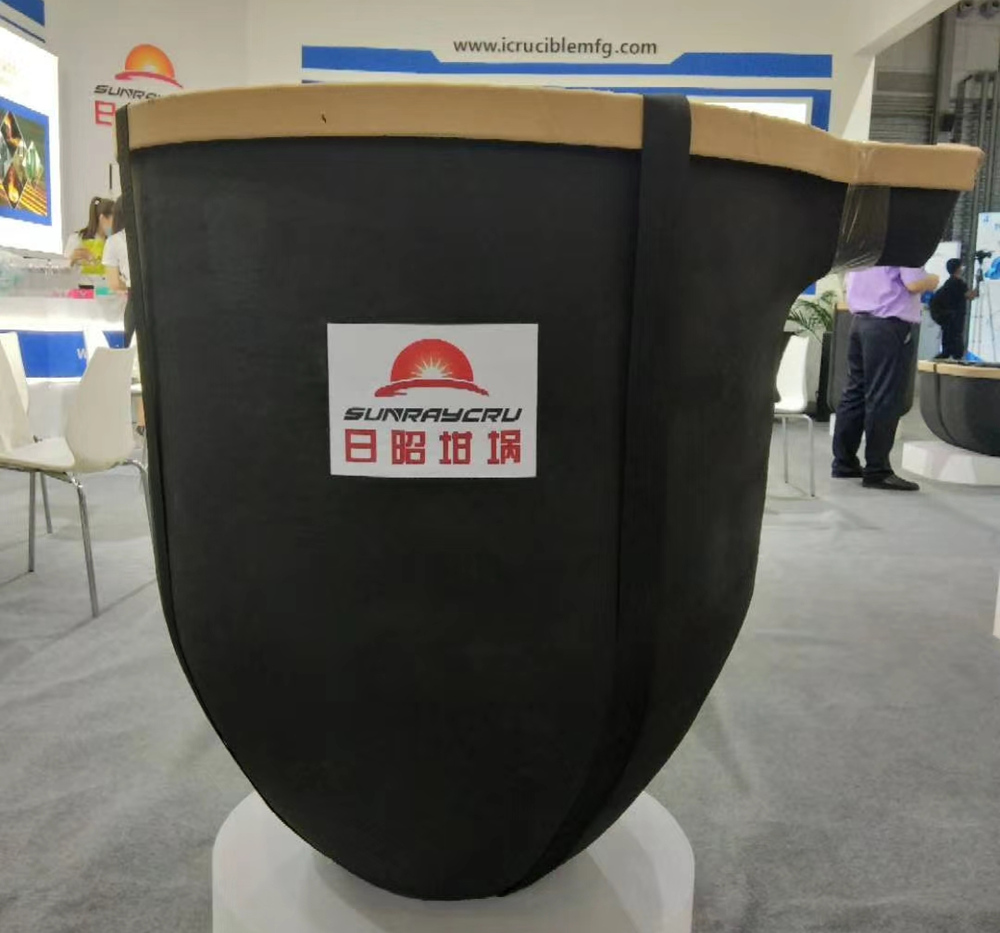 日昭坩堝展臺吸引絡(luò)繹不絕的專業(yè)觀眾 據(jù)介紹,日昭坩堝本次展出的四款產(chǎn)品,5000#普通坩堝,口徑1050 x高度1320mm,裝鋁容量1.8T,適用于電爐、燃?xì)鉅t;2300#帶嘴坩堝,口徑880x高1100mm,裝鋁容量750Kg,適用于燃?xì)鉅t、可傾爐;1250#直體坩堝,口徑620x高850mm,裝鋁容量400Kg,適用于中頻爐、電磁感應(yīng)爐、電爐,既可用于冶煉鋁合金又可熔煉稀貴金屬;1560#U型坩堝, 長1080x寬580x高500mm,裝鋁容量450Kg,適用于燃?xì)鉅t電爐,坩堝中部放置擋板可以實(shí)現(xiàn)自動化要求,可一邊取湯、一邊投料。