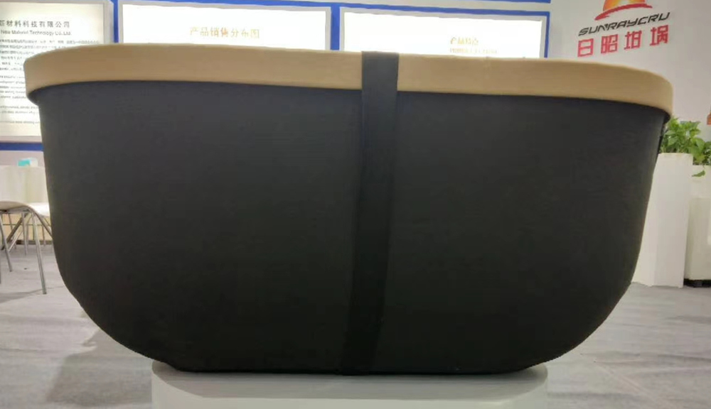 日昭坩堝布置新穎的展臺 青島日昭新材料科技有限公司(下稱“日昭坩堝公司”)系耐火材料領(lǐng)域的新銳品牌,公司主營鋁、鋅、銅、金、銀及其合金等有色金屬熔煉用碳化硅石墨坩堝產(chǎn)品。本屆展會,日昭坩堝公司現(xiàn)場展示了5000#普通坩堝、2300#帶嘴坩堝、1250#直體坩堝、1560#U型坩堝等四款碳化硅石墨坩堝產(chǎn)品。 日昭坩堝公司總經(jīng)理單先生表示:“我們的母體是一家經(jīng)營多年的坩堝生產(chǎn)企業(yè),擁有成熟的配料技術(shù)和生產(chǎn)工藝,旗下有三條直徑在800、1000、1250mm的等靜壓成型生產(chǎn)線,為用戶提供穩(wěn)定、耐用和品種齊全的耐火材料產(chǎn)品及解決方案。過去,公司一直為行業(yè)知名坩堝品牌做貼牌生產(chǎn)。去年下半年,我們注冊了自己的坩堝品牌—日昭,所以我們既是坩堝領(lǐng)域的一個新品牌,也是一家老牌坩堝生產(chǎn)企業(yè)。”