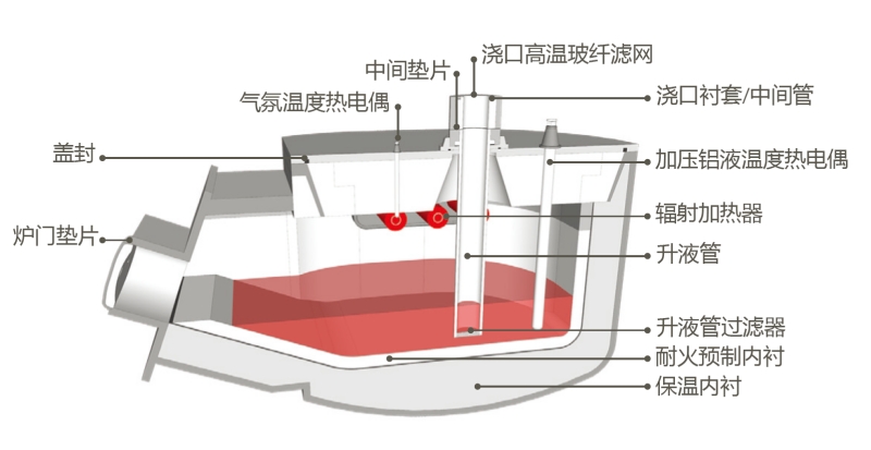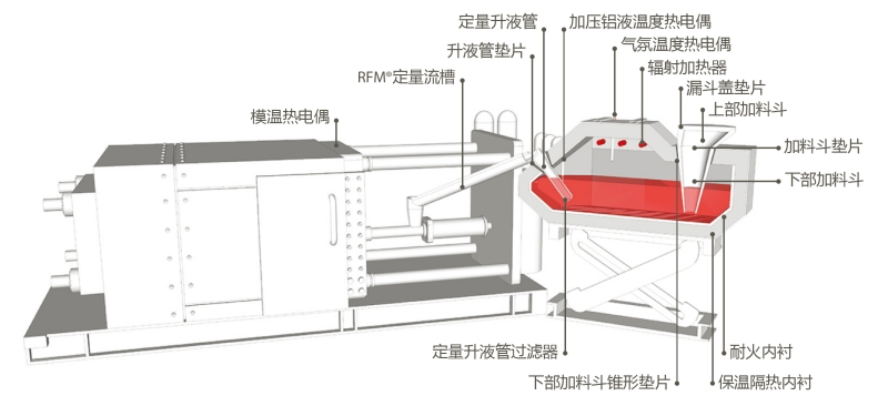 2.高壓定量澆鑄爐 Pyrotek 為定量爐提供加料漏斗、過(guò)濾器、定量升液管、RFM® 定量流槽、耐火材料預(yù)制件內(nèi)襯、密封墊片等創(chuàng)新解決方案。