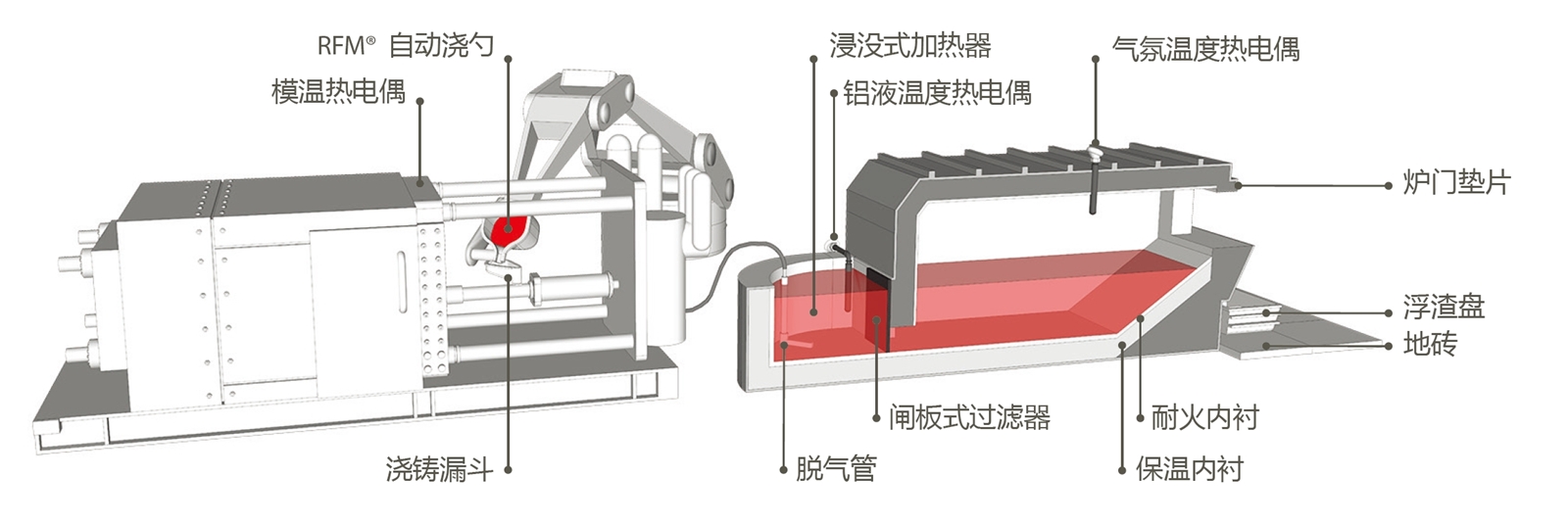 ![]() 1.高壓鑄造 Pyrotek 為壓鑄提供RFM® 自動(dòng)澆勺、轉(zhuǎn)湯包、澆鑄漏斗、除氣設(shè)備、保溫爐、過(guò)濾器以及各種環(huán)保除氣除渣劑等產(chǎn)品。