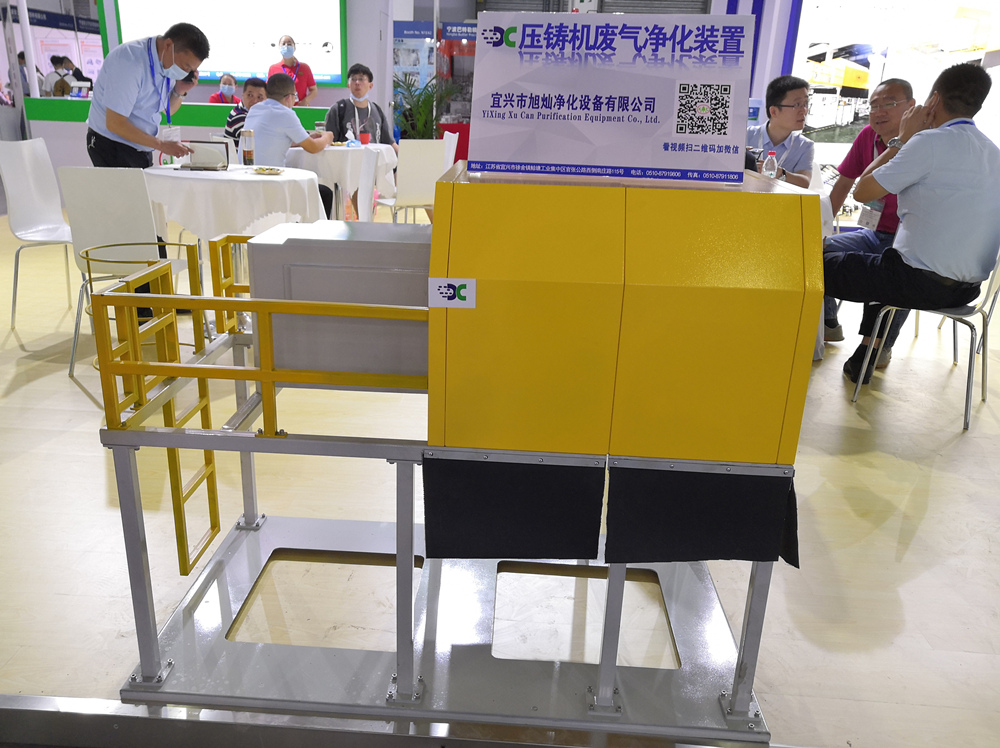 壓鑄機廢氣凈化裝置 據介紹,宜興旭燦本次展示的兩款設備,可全面助力壓鑄廠實現環保生產。其中,壓鑄機廢氣凈化裝置,系經過多次技術升級和設計優化的新一代機型。該設備綜合性能全面提升,凈化效果好,排放濃度<1mg/m3;智能化清洗機構,可自動清洗;煙罩移動齒輪條傳動,動作平穩,安全可靠;防護安全性能高;煙罩外殼鈑金模塊化專利設計,美觀大方。值得一提的是,運營成本低,低功率大風量離心風機,所有過濾單元均可清洗,無耗材。