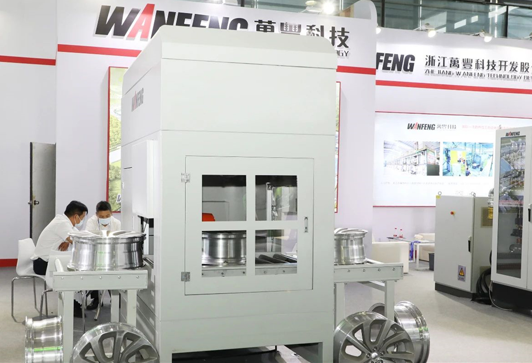 ![]() 7月7日至9日,由中國機械工程學會鑄造分會主辦的2021上海國際壓鑄展/國際有色鑄造展在上海新國際博覽中心盛大舉行。 萬豐科技精彩亮相E7館E7A11展位,推出新款大型鋁合金薄壁件低壓鑄造機、鋁輪轂機器人去毛刺生產線、節能型智能塔式熔化爐及有色合金鑄造自動化整體解決方案技術。再一次面向行業展示了萬豐在熱加工領域全線設備研發、軟件開發、系統集成等方面的最新成果和品牌實力。