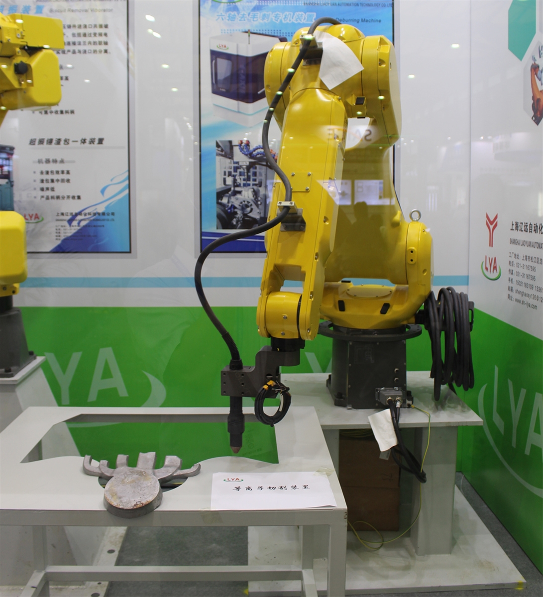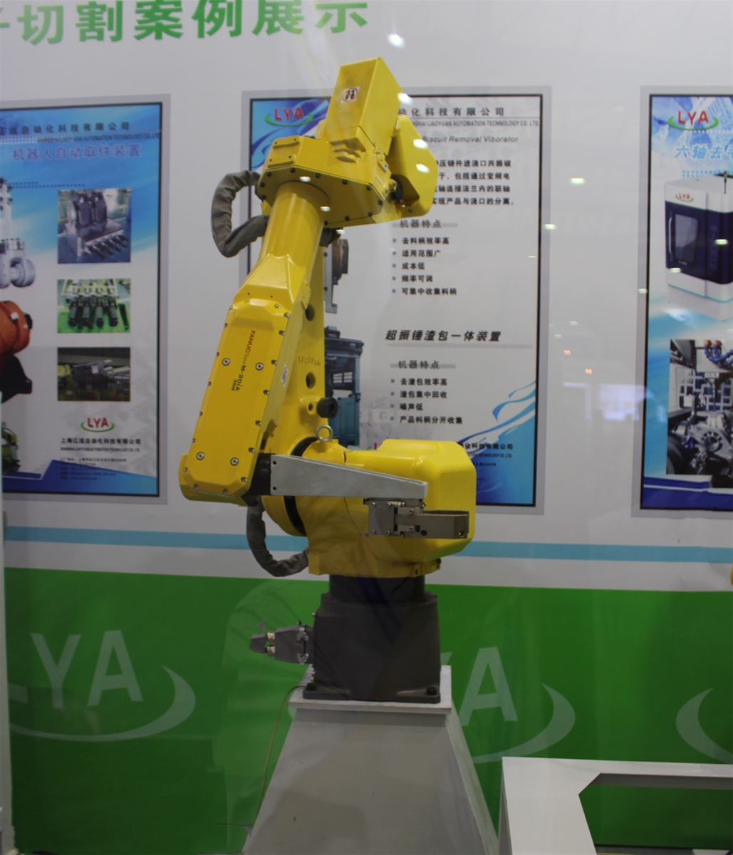 遼遠六軸等離子切割裝置 遼遠自動化展示的六軸取件機器人的抓手采用了內制氣缸試樣設計,具有重量輕、負載更小,壽命更長的優點,同時也可根據客戶要求定制取件、鑲件一體抓手。六軸等離子切割裝置主要針對大型壓鑄件切割去料柄,具有循環時間快、切割精準等優點。對于大型壓鑄件容易變形的缺陷以及使用油壓切邊機進行切邊模產生的高成本,等離子切割裝置有很好的成本優勢。同時,還可根據客戶的需要配置切割房及防爆除塵功能,使生產更安全。 隨著新能源汽車鑄件大型一體化以及配套設備超大型壓鑄機的市場化應用,壓鑄行業設備商及配套商也迎來了發展機遇。遼遠自動化總經理胡培民先生表示:“超大型壓鑄機的應用實現了大型鑄件生產,公司今后也將開發出超大型壓鑄機(6000T以上)配套的設備,在抓住機遇的同時也不斷提升自動化技術研發能力。另外,公司還會著力于靜電噴涂和微量噴涂、針對以上噴涂對模具的溫度控制較高,我們開發了模具冷卻控制系統,能精確控制模具溫度,形成最佳脫模效果。同時針對6000T開發了料柄抓手和產品取件抓手。”