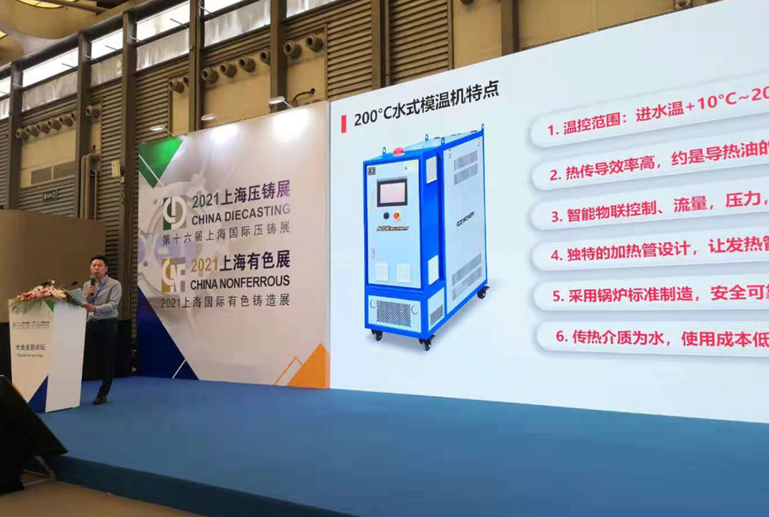 作為大型專業壓鑄展會的“常客”,蘇州奧德高端裝備股份有限公司(“蘇州奧德”)一如既往地積極參與,每次都能為觀眾帶來新產品、新技術。本屆展會上,蘇州奧德攜創新產品“汽車結構件專用200°C水式物聯模溫機”、壓鑄專用油溫機、高壓點冷機等實物產品,以及在“工業4.0”背景下,為壓鑄車間生產線溫度控制而開發的鑄造(壓鑄)溫控系統解應用解決方案“亮相”,彰顯其在壓鑄領域提供多元化模溫設備和一站式溫控解決方案的能力和實力。 據介紹,蘇州奧德研發的“汽車結構件專用200°C水式物聯模溫機”榮獲“2021年度壓鑄行業創新技術”稱號。本機型主要根據蒸汽絕對飽和壓力理論進行創新:由于水在標準大氣壓力下沸點為 100℃,當使用溫度高于 100℃時便需密封加壓。當壓力增加到16公斤時,水的沸點可以提高到200°C。而這款高溫水溫機的最高溫度可以達到200°C, 控制精度為200°C±1°C,同時具備壓力監控、流量監控、遠程物聯功能,完全可以滿足工業4.0物聯數據化生產需求。