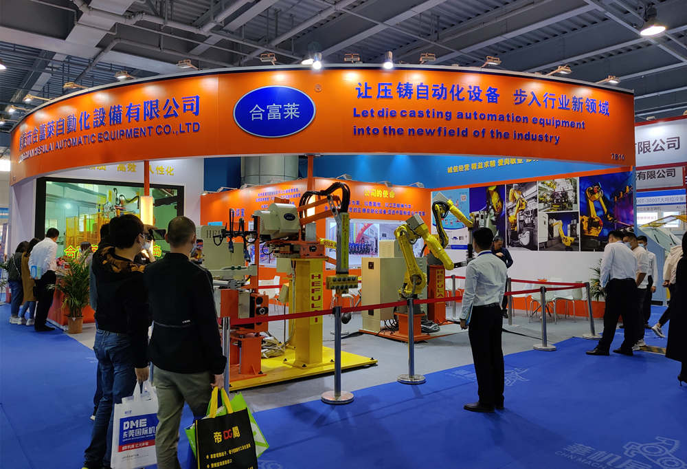 ![]() 2021年12月9日-13日,為期四天的“2021 DME東莞壓鑄展”在東莞厚街廣東現(xiàn)代國際會(huì)展中心勝利舉辦。得益于國家在疫情防控方面的卓越表現(xiàn),中國經(jīng)濟(jì)強(qiáng)勁復(fù)蘇,加之外貿(mào)需求的爆發(fā)式增長,在國內(nèi)、國際雙循環(huán)帶動(dòng)下,制造業(yè)一片欣欣向榮。壓鑄行業(yè)發(fā)展勢頭同樣迅猛,激發(fā)了產(chǎn)業(yè)鏈上下游企業(yè)、專業(yè)觀眾參展參會(huì)的熱情。 東莞市合富萊自動(dòng)化設(shè)備有限公司(“東莞合富萊”)系行業(yè)領(lǐng)先的壓鑄自動(dòng)化設(shè)備及生產(chǎn)解決方案提供商,為客戶提供鋅、鋁合金壓鑄機(jī)械手(給湯機(jī)、噴霧機(jī)、取件機(jī))和機(jī)器人壓鑄島解決方案。東莞合富萊今年為第二次“亮相”DME東莞壓鑄展,落座于7號館7B10展位。近百平米的碩大展臺,展示多套技術(shù)先進(jìn)的壓鑄自動(dòng)化設(shè)備,以及噴霧、取件機(jī)器人壓鑄島。