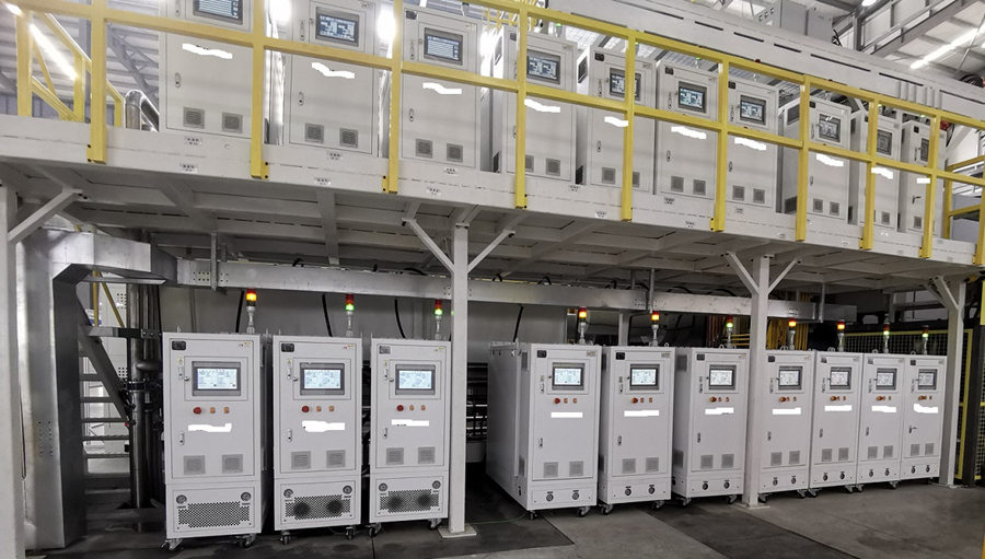 據(jù)介紹,奧德高端裝備公司根據(jù)大型汽車結(jié)構(gòu)件一體化壓鑄成型的溫控需求,設(shè)計(jì)及研制出系統(tǒng)性的溫控解決方案,并推出用于匹配“一體化壓鑄成型”的一系列高溫、中溫、低溫溫控產(chǎn)品。該全套溫控島解決方案包含:180℃-200℃水溫機(jī)、320℃油溫機(jī)、冷熱溫控站、多通道模冷機(jī)、多通道點(diǎn)冷機(jī)等硬件設(shè)備,以及統(tǒng)一系統(tǒng)控制的中央集成控制系統(tǒng)。 成熟穩(wěn)定的“大型一體化壓鑄”模溫控制系統(tǒng) 據(jù)了解,大型一體化壓鑄汽車結(jié)構(gòu)件的制作流程長且薄壁,要求模具溫度在長流程過程中,能夠根據(jù)不同的流態(tài)精準(zhǔn)控制不同模區(qū)的溫度,因此對模溫控制的幅寬有著已知和未知的需求。奧德公司以此為基礎(chǔ),結(jié)合多年設(shè)計(jì)及應(yīng)用經(jīng)驗(yàn),設(shè)計(jì)出20℃~320℃的大寬幅可調(diào)溫區(qū),給模具溫度平衡提供穩(wěn)定且可控的溫度源輸出,同時大幅度的溫度輸出不僅可以對模具進(jìn)行溫度平衡控制,還可以延伸至對壓室、沖頭、分流錐、澆口套等進(jìn)行溫度控制,從而留給了壓鑄工藝師足夠的操作調(diào)整空間。這樣既保障了每一模鑄件的品質(zhì),又大大縮短了每一模次的生產(chǎn)周期。