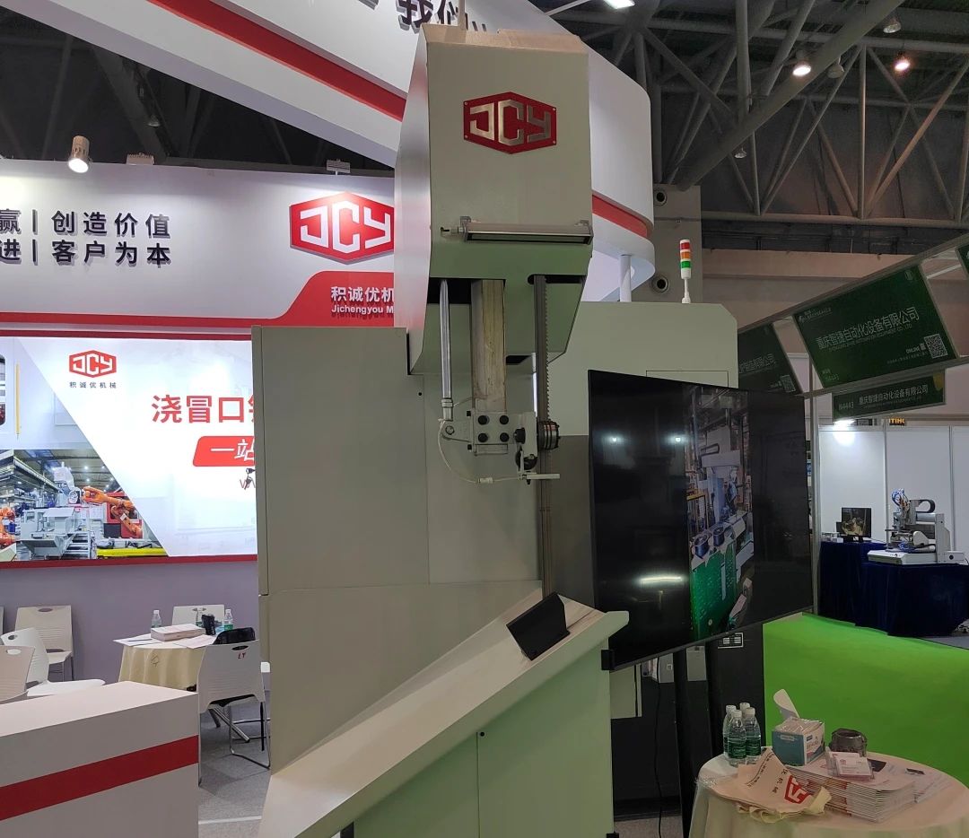 ![]() 積誠優(yōu)展臺 2023年5月26-29日,“2023重慶立嘉國際鑄造及壓鑄展”在重慶國際博覽中心舉行。來自溫控設(shè)備廠、機加工刀具制造商、壓鑄件澆冒口鋸切設(shè)備提供商等壓鑄周邊設(shè)備企業(yè),攜各自主打產(chǎn)品,為現(xiàn)場觀眾展示先進的技術(shù)和解決方案。 積誠優(yōu):推介高速高效率的壓鑄件澆冒口鋸切方案 在“2023重慶立嘉鑄造及壓鑄展”上,積誠優(yōu)機械設(shè)備(蘇州)有限公司(簡稱“積誠優(yōu)”)現(xiàn)場展示了兩款高性能高效率的壓鑄件產(chǎn)品鋸切設(shè)備,包括:一款是雙工位圓盤鋸、一款配合機械手用的高速帶鋸機。 為滿足大批量、小件的壓鑄件產(chǎn)品澆冒口鋸切需求,積誠優(yōu)今年新開發(fā)了雙工位圓盤鋸設(shè)備。該設(shè)備設(shè)計了兩個工位(工作臺),一個工位鋸切澆冒口,一個工位上下料,鋸切與上下料兩道工序同時進行,大大節(jié)省時間,提高工作效率。這可以很好地滿足快節(jié)拍的壓鑄生產(chǎn)線的需求。