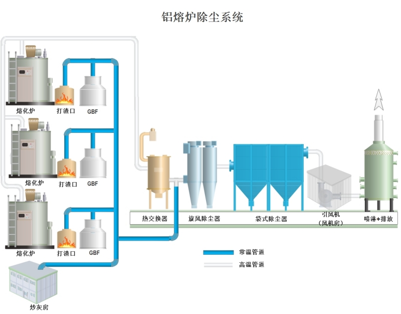 廣州格邦也針對多臺熔化爐開發了自動調節系統。一套凈化設備可針對數臺熔化爐,做到根據每臺爐的生產情況,結合打渣、除氣、烤包等不同工況,自動調節高溫閥門開閉角度,最大程度地節能減排。