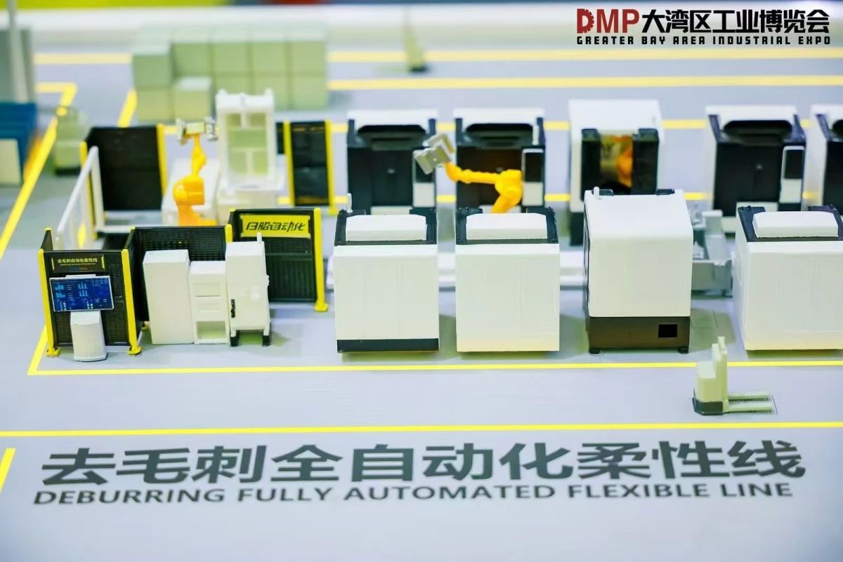 日昭自動化展示的去毛刺自動化柔性線模型 據悉,日昭自動化的復合型去毛刺打磨拋光一體工作站,巧妙結合了六軸去毛刺專機與機器人打磨拋光兩種技術,形成了一套能夠提供一站式毛刺去除和打磨拋光服務的智能化解決方案。整機采用全工序流水式布局,最多可同時裝載16種清理打磨工具,工作過程中無需翻轉、中轉或等待,單機工作效率是傳統設備的1.5-2倍,人工成本節(jié)約可達50%。