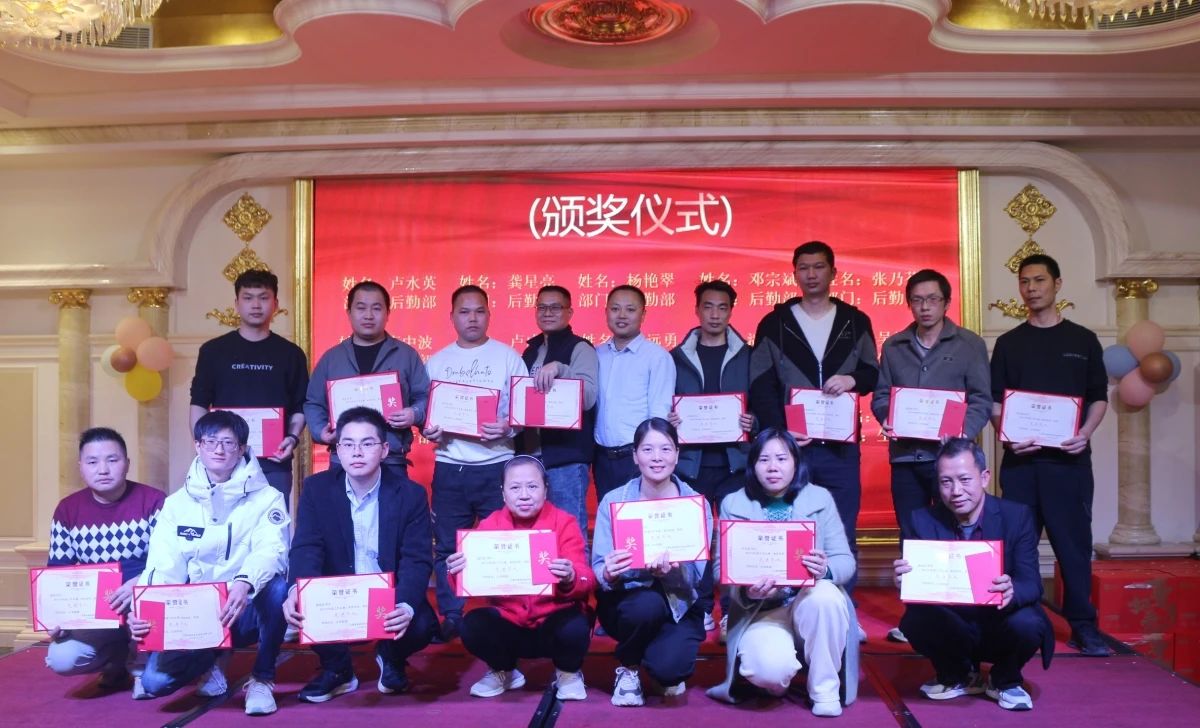 廣東賽宏為杰出員工頒發(fā)“十年貢獻獎”、“杰出貢獻獎”、“先進個人獎”榮譽獎項 慶典活動上,廣東賽宏還準備了豐盛的晚宴,并設(shè)置了貢獻獎頒獎、幸運抽獎、歌曲演唱等環(huán)節(jié)。為表彰多年來為公司發(fā)展默默奉獻的杰出員工,廣東賽宏頒發(fā)了“十年貢獻獎”、“杰出貢獻獎”、“先進個人獎”等榮譽獎項。為增添慶典氣氛,公司還邀請了著名歌手賀玲女士及與會嘉賓現(xiàn)場演唱了《冬天里的一把火》、《夜空中最亮的星》、《我相信》、《我的未來不是夢》、《十年》、《朋友》等膾炙人口的歌曲,將整場慶典推向高潮。