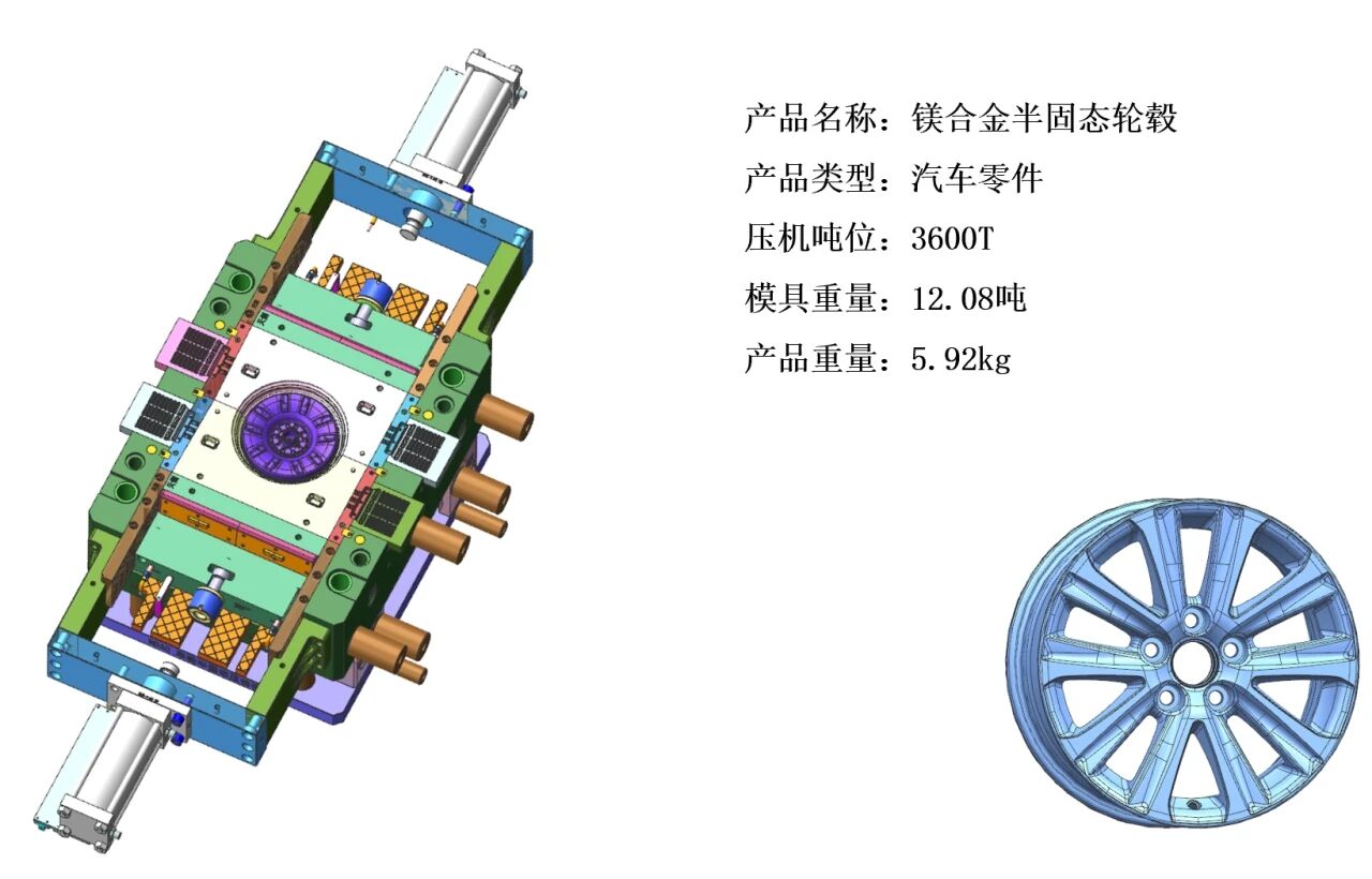 鎂合金半固態(tài)注射成型車輪模具 協(xié)同合作,攻克技術(shù)難題 在鎂合金半固態(tài)注射成型模具研發(fā)過程中,搏潤(rùn)模具與合作伙伴攜手攻克了諸多技術(shù)難題。以往,這種成型工藝多用于計(jì)算機(jī)、消費(fèi)電子類零部件,鑄件尺寸較小,成型難度低,對(duì)于流動(dòng)距離較長(zhǎng)的汽車鑄件,缺乏可參考資料,且大多模流軟件未涉足該領(lǐng)域。 以模具溫控設(shè)計(jì)為例,可選擇的冷卻介質(zhì)有限,針對(duì)局部熱量集中的部位,若熱量不能及時(shí)帶走,可能導(dǎo)致鑄件出現(xiàn)熱裂紋等鑄造缺陷。設(shè)計(jì)團(tuán)隊(duì)經(jīng)過多次反復(fù)討論和模具溫控方案模擬分析迭代,最終采用梯度冷卻方案,有效解決了這一難題。