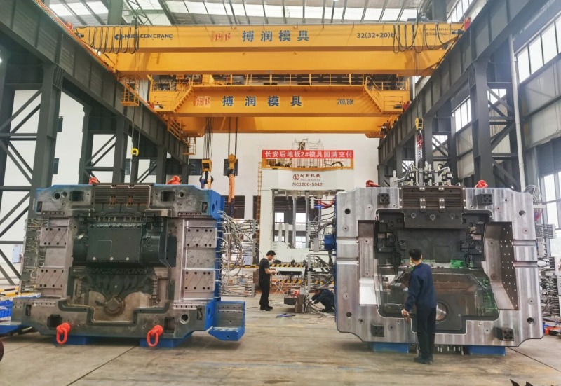 超大型壓鑄模具制造車間 隨著新能源汽車市場(chǎng)的發(fā)展,壓鑄件呈現(xiàn)“高度集成化”趨勢(shì),對(duì)模具設(shè)計(jì)和制造提出了更高要求。搏潤(rùn)模具持續(xù)強(qiáng)化研發(fā)投入與硬件升級(jí),打造了一支技術(shù)實(shí)力過硬、具有創(chuàng)新創(chuàng)造能力的團(tuán)隊(duì)。公司持續(xù)在研發(fā)上投入資金,在人才引進(jìn)、軟硬件投入以及提升模流分析算力等方面不斷發(fā)力,提升設(shè)計(jì)能力。 目前,搏潤(rùn)模具已具備各類大型鑄件的仿真分析、設(shè)計(jì)、模具制造能力。為適應(yīng)市場(chǎng)對(duì)大型一體化壓鑄模具的需求,公司于2022年投入第二工廠,配備200噸行車、1200噸超大型合模機(jī)、大型五軸龍門加工中心和龍門三坐標(biāo)等硬核裝備,具備制造16000噸及以內(nèi)大型精密壓鑄模具的能力。