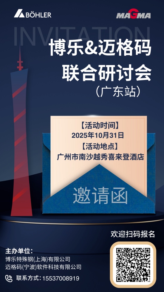 ![]() 2025年10月31日,博樂特殊鋼(上海)有限公司、邁格碼(寧波)軟件科技有限公司聯合壓鑄研討會,將于廣東省廣州市南沙越秀喜來登酒店舉行。 本次研討會內容豐富、亮點紛呈,將圍繞多個專業主題展開深入介紹與探討,具體包括隨形水路澆口套的應用分析、鎂合金半固態成型技術,以及模流仿真實際案例分析等,旨在為參會者帶來前沿的行業知識與實用的技術經驗。 本次會議不收取費用,歡迎業界同仁報名參加。為表達對參會嘉賓的誠摯感謝,博樂、邁格碼精心準備了驚喜伴手禮,其中包括最新熱作模具鋼產品手冊、高壓鑄造模擬標準白皮書,以及高壓壓鑄中最常見的5種鑄造缺陷解析資料等。 邁格碼(寧波)軟件科技有限公司作為全球領先的鑄造工藝仿真軟件開發商和供應商邁格碼MAGMA全資子公司,也將在現場精彩呈現MAGMASOFT®的強大功能,展示如何通過先進的仿真技術優化鑄造工藝,降低成本并提高產品合格率。 博樂特殊鋼(上海)有限公司作為優質的工模具鋼和特種鋼材供應商,將在研討會現場詳細分享BOHLER W403 VMR的卓越性能,并全面介紹博樂針對壓鑄行業推出的整體解決方案,助力行業客戶提升生產效率與產品質量。