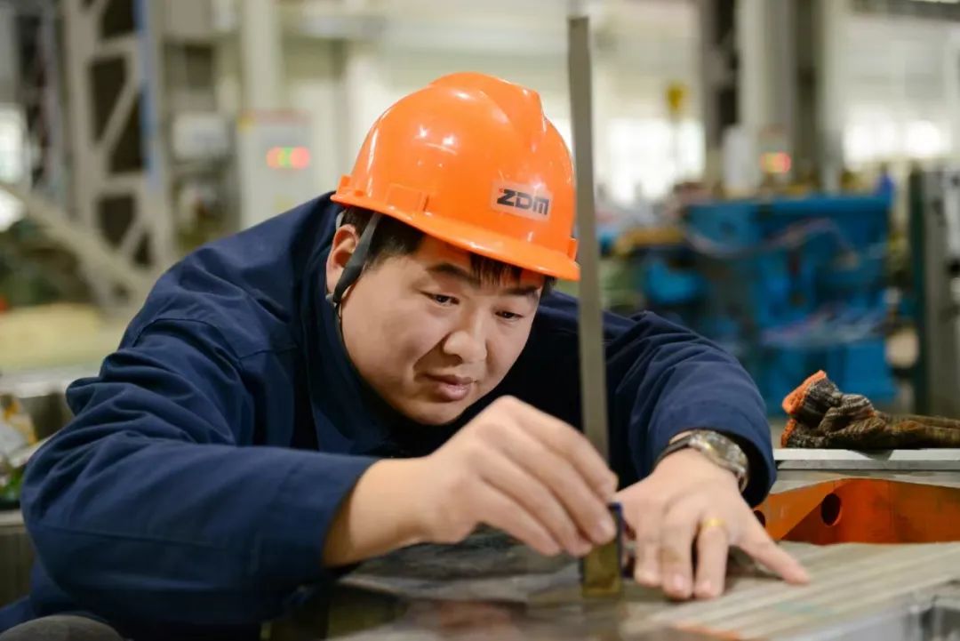 企業生產車間內員工交流經驗 對此,技術團隊經常奮戰在機器旁,積極探索、不斷嘗試,致力于突破某項技術難點,優化某臺生產設備。 “有了這種模具噸位制造的實力,就意味著企業贏得了更大市場。”劉瑾介紹,“但我們追求的終極目標,并不是噸位的升級,而是在能力范圍內把所有的產品做精做好。” 今年11月,臻至還交付了一臺13500噸的適配壓機,模具自重102噸,制作周期128天,生產效率獲得了合作客戶的高度認可。