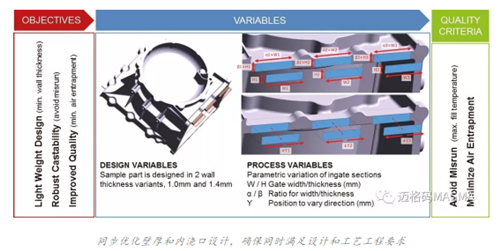 在開發和設計過程的最開始以及整個過程中,諸如鑄造工藝模擬這類虛擬方法的應用,對于評估可行性及潛在的制造限制發揮了關鍵的作用。 這個項目的最終目的:要實現一個強大穩健且極具成本效益的鑄造工藝,確保能夠同時整合對產品設計、工程設計和制造工藝的不同需求。為此,豐田工程師成功將MAGMASOFT®自主設計集成到了自己的設計過程中。他們相信,只有通過高科技的工藝分析和系統的測試規劃,才能有效識別出影響鑄件質量和盈利能力的重要變量。 為了評估合適的工作流并估算出潛在效益,豐田汽車公司的工程師針對典型的外殼鑄件應用了 MAGMASOFT®自主設計。這個項目需要在設計部門所期望的“壁厚最薄的零部件”和工藝工程部門所期望的鑄造工藝的“穩健性和早期階段經濟效率”之間找到平衡點。豐田汽車公司的工程師希望能夠實現上述兩個目標,并確保首批試樣就能穩健生產出薄壁外殼。