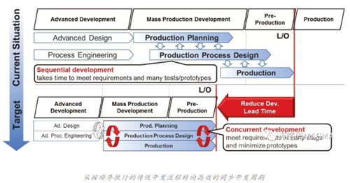 ![]() 如今的汽車行業普遍面臨著產品開發周期明顯縮短、資源效率和盈利能力較低的嚴峻挑戰。與此同時,即使到了開發過程的晚期,汽車制造商仍可能會對產品或零部件進行必要的更改,以維持一定的靈活性。 在豐田汽車公司,在他們針對各種高度復雜的零部件采用的鋁壓鑄件批量生產工藝中,這一點體現得尤為明顯。某些更改將會導致需要修改各種生產工具和工藝布置,而這種修改不僅耗時,而且成本高昂。 為了解決這種矛盾,豐田汽車公司的工程師通過努力,將原來按順序進行的產品、工藝設計和生產計劃開發流程改為了同步開發周期。這樣做的目的就是希望在盡量早期階段滿足部分相悖的要求,從而最大程度地減少成本高昂的后期更改和原型設計工作。