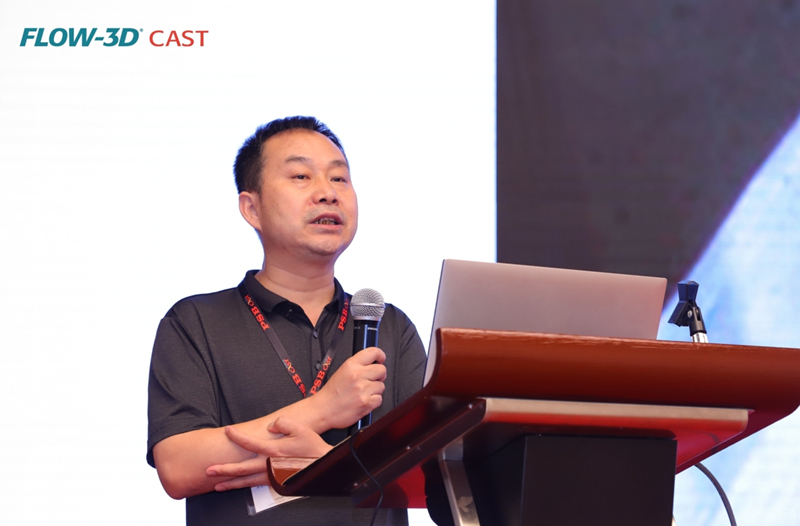 華域皮爾博格有色零部件有限公司的劉緒周先生 帕盛博(蘇州)軟件科技有限公司的渠立歡先生以《FLOW-3D軟件在壓鑄方面的應用》,分享了“氣孔粒子追蹤”、“產量提高”兩個FLOW-3D軟件的應用案例。
