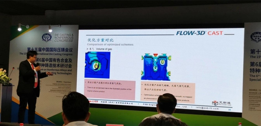 低壓、重力鑄造技術(shù)專場(chǎng)活動(dòng)現(xiàn)場(chǎng) PSB負(fù)責(zé)人在主論壇做主題報(bào)告 帕盛博(蘇州)軟件科技有限公司總經(jīng)理余永吉先生,在本次會(huì)議中發(fā)表了“利用鑄造模擬軟件優(yōu)化閥蓋工藝設(shè)計(jì)提高產(chǎn)品良率”。提到397閥蓋原有工藝方案存在缺陷問(wèn)題,通過(guò)分析缺陷產(chǎn)生原因、機(jī)理和鑄造工藝,結(jié)合FLOW-3D CAST鑄造模擬軟件,給出了優(yōu)化解決方案。