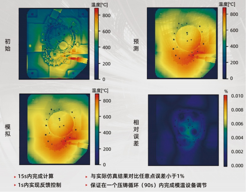 Supreium ADR智能質(zhì)檢系統(tǒng)具備高魯棒性、高準確率、低數(shù)據(jù)依賴等重要技術(shù)優(yōu)勢,識別效果不受產(chǎn)品結(jié)構(gòu)變化影響,盲測準確率經(jīng)驗證在95%以上,且通過結(jié)合材料學基本原理進行缺陷聚類,研發(fā)虛擬缺陷生成算法,遷移學習等方式,完美解決了數(shù)據(jù)依賴的問題,是真正AI驅(qū)動的無人化質(zhì)檢工具,幫助企業(yè)實現(xiàn)檢測節(jié)拍提高80%以上,檢測成本每年節(jié)省30%以上。 04.智能CAE仿真系統(tǒng) 由于一體化壓鑄技術(shù)涉及復雜、大型、高精密零件的一體化成型,其開發(fā)過程離不開CAE仿真預(yù)測的關(guān)鍵性支撐作用。基于自主求解算法和超算云仿真架構(gòu)等優(yōu)勢,適創(chuàng)科技壓鑄智能車間以自主壓鑄CAE仿真平臺為客戶提供全流程智能化的超快速模擬仿真分析與設(shè)計服務(wù)。
