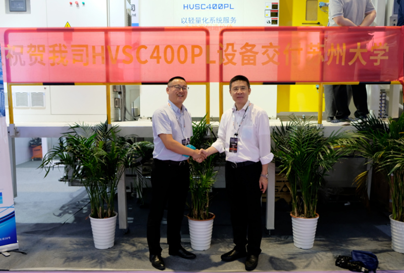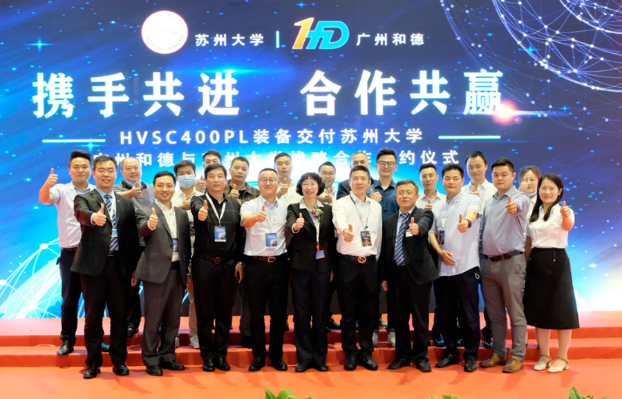 蘇州大學(xué)張海教授與廣州和德石洪偉總經(jīng)理 隨后,廣州和德總經(jīng)理石洪偉向雙方達(dá)成的戰(zhàn)略合作表示感謝。他表示,和德將第三代HVSC400PL型擠壓鑄造裝備交付給蘇州大學(xué),雙方將在基于擠壓鑄造成型工藝專用材料研發(fā),80-120MPa機(jī)械靜壓力下凝固過程中溫度、壓力對(duì)產(chǎn)品力學(xué)性能的影響等基礎(chǔ)理論方面進(jìn)行研究,最終形成基于此工藝的底層數(shù)據(jù)及邏輯框架,廣泛服務(wù)于擠壓鑄造行業(yè)。 儀式最后,在與會(huì)領(lǐng)導(dǎo)和行業(yè)同仁的見證下,校企雙方領(lǐng)導(dǎo)共同簽訂了戰(zhàn)略合作協(xié)議,并合影留念。